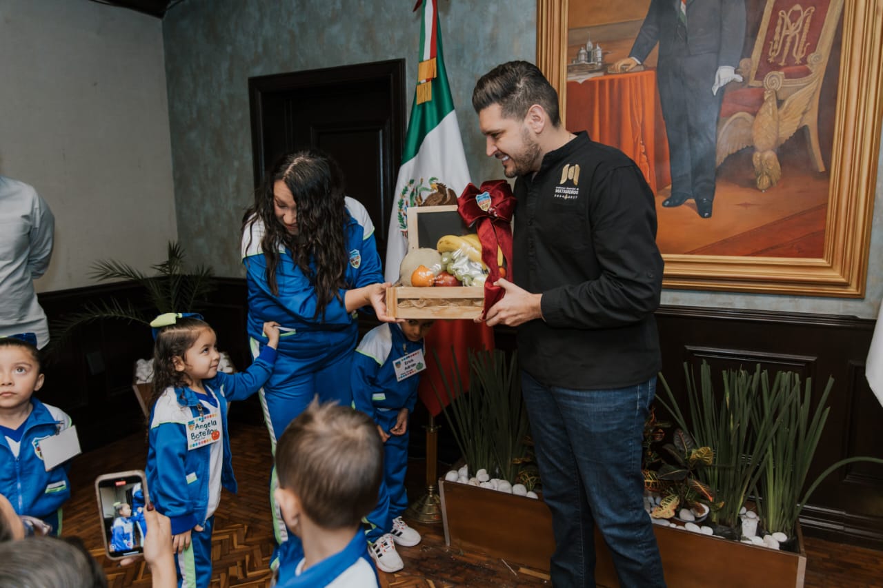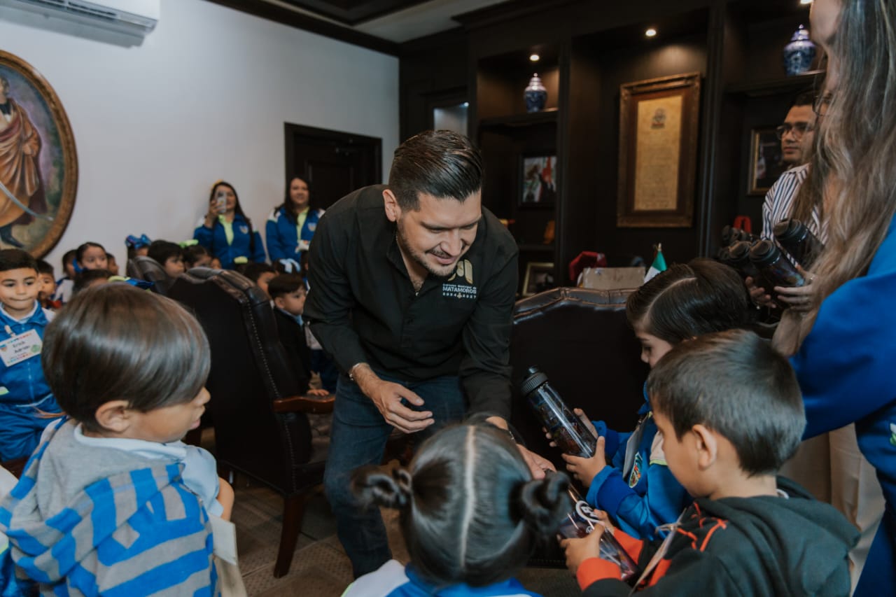 H. Matamoros.- El alcalde Alberto Granados Fávila recibió en su despacho a los pequeños del jardín de niños "Francisco Pérez Ríos", quienes expresaron su apoyo al edil, animándolo a continuar con su ardua labor para que Matamoros brille aún más.