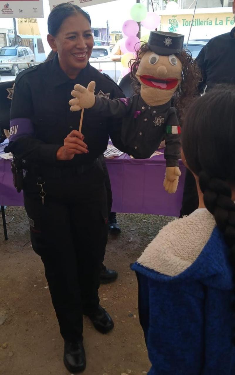 Ciudad Victoria, Tamaulipas. - Además de dar a conocer diferentes tipos de violencia, los lugares y niveles en que pudiera presentarse, el personal de la Guardia Estatal de Género mantiene la proximidad en planteles educativos con la finalidad de reforzar la confianza de niños y niñas en sus autoridades.