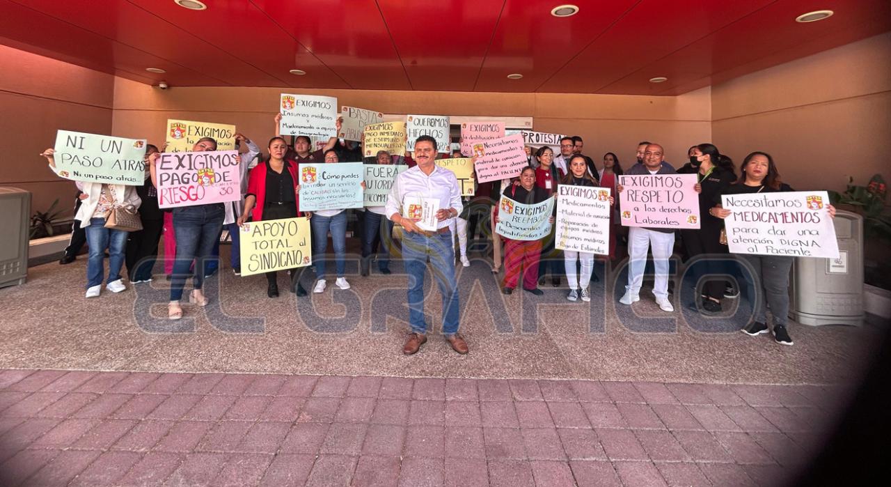 “Continuamos nuestra movilización por la falta de insumos y medicamentos que hay por parte de IMSS Bienestar, ese incumplimiento que ha tenido, este hospital es de tercer nivel y ahora no tenemos los insumos necesarios, no tenemos tomografía no tenemos resonancia hemos perdido licencias sanitarias también derivado de la transición. Tenemos autoridades indolentes que no han visto los temas también sindicales que suceden, hubo mucha amenaza por parte de los directivo; nos han querido amedrentar con actas administrativas para que no se manifiesten”.