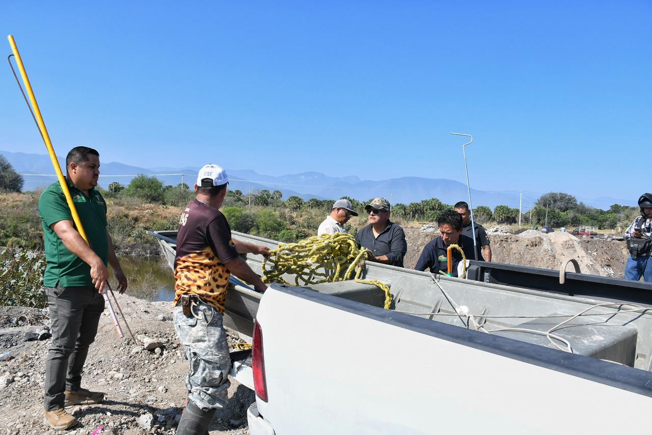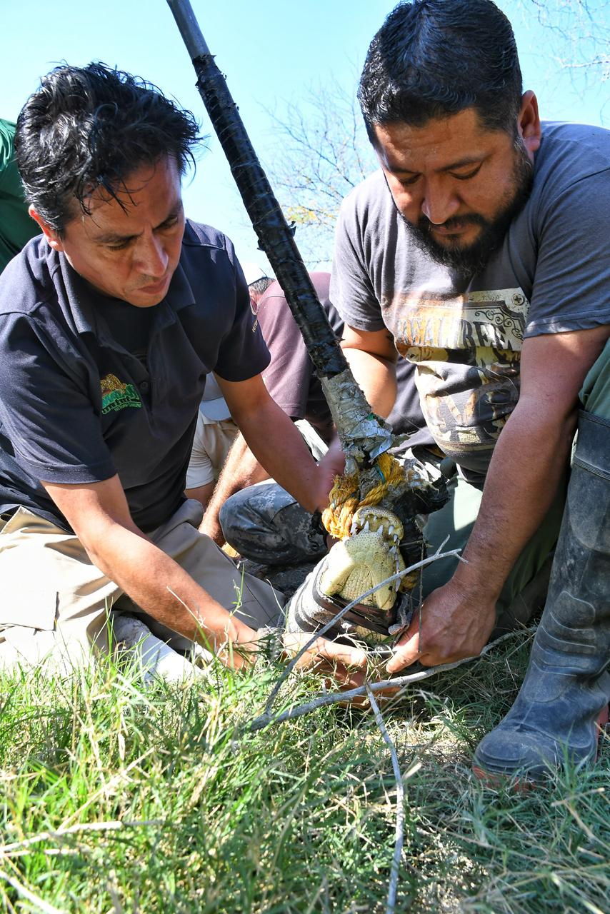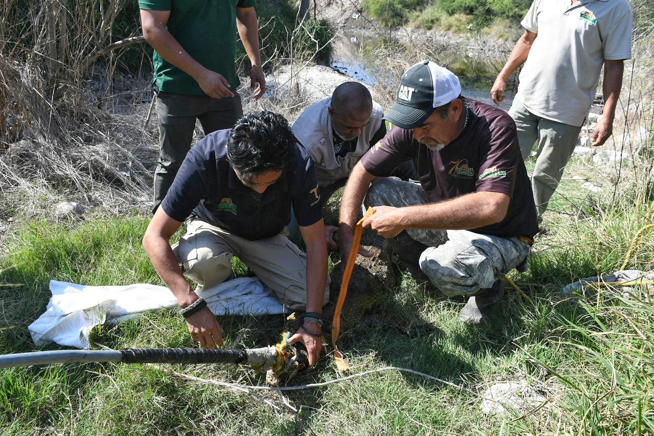 Ciudad Victoria, Tamaulipas.- Personal de la Comisión de Parques y Biodiversidad de Tamaulipas (CPBT) rescató un cocodrilo, que fue reportado por los pobladores del ejido El Olmo de Ciudad Victoria.