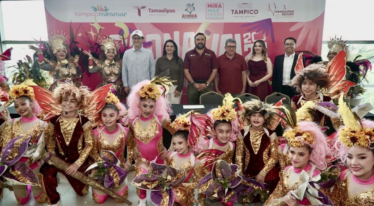 En rueda de prensa en la Expo Tampico, acompañado de la presidenta municipal de Tampico, Mónica Villarreal Anaya; de los alcaldes, Erasmo González Robledo, de Ciudad Madero; y Armando Martínez Manríquez, de Altamira, además de Hanaa Lizbeth Lee Morales y Esteban Armando González González, reina y rey del Carnaval Tamaulipas 2025, destacó que este evento se consolidará como un atractivo turístico que atraerá a miles de visitantes.