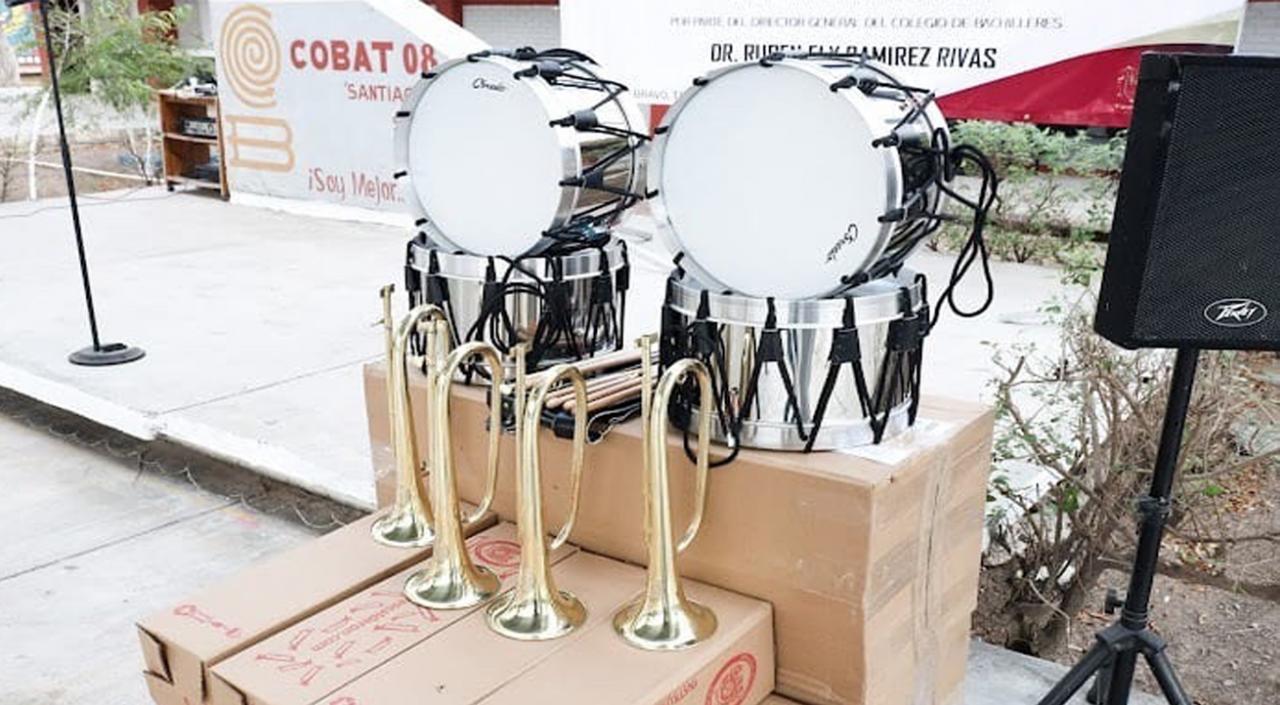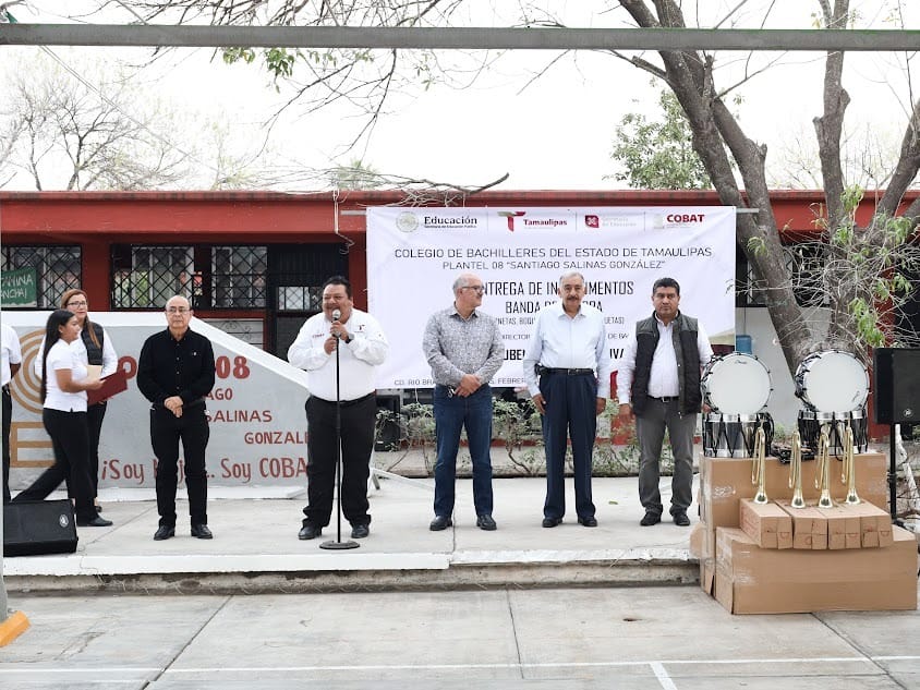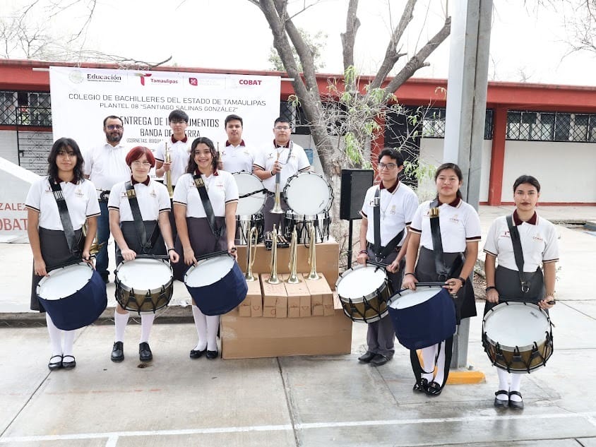 Como muestra de ese compromiso docente, reconoció a la maestra Rosa Isela Méndez Ramírez por sus 33 años de servicio en la educación, cuya dedicación y profesionalismo ha formado a jóvenes tamaulipecos durante más de tres décadas, y también entregó tambores y trompetas a las alumnas y alumnos integrantes de la banda de guerra del plantel.