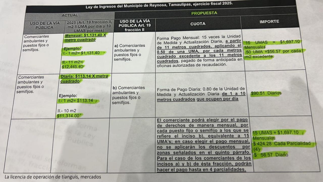 Procediendo a la defensa del clamor de los comerciantes ambulantes, reduciendo los costos estimados en hasta 1mil 200 pesos por permiso de usufructo concesionado de la vía publica en comerciantes de puestos fijos y semifijos en la ciudad.
