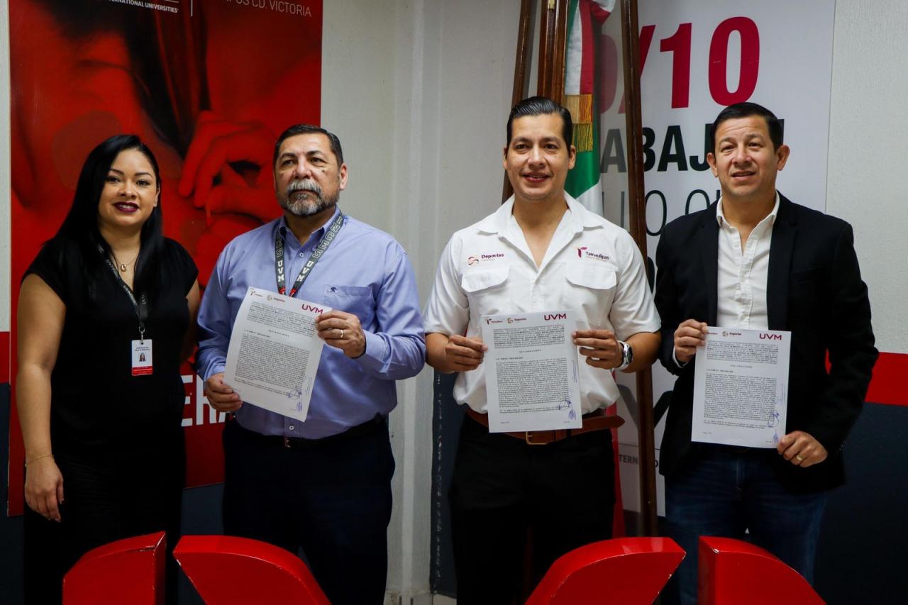 Ciudad Victoria, Tamaulipas.-En un paso significativo para el desarrollo del deporte y la educación en Tamaulipas, el director general del Instituto del Deporte, Manuel Virués Lozano firmó un convenio de colaboración con la Universidad del Valle de México campus Ciudad Victoria (UVM), el cual traerá múltiples beneficios para atletas de alto rendimiento, sus familias y la comunidad estudiantil.