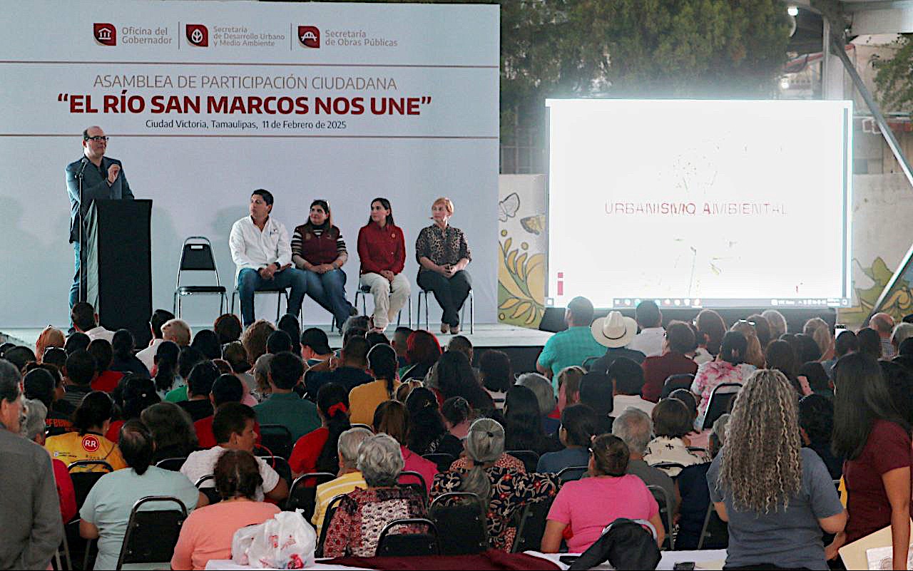 Ciudad Victoria, Tamaulipas.- En respuesta a las solicitudes y peticiones de la ciudadanía tamaulipeca, se llevó a cabo la Primera Asamblea de Participación Ciudadana, donde se presentó el proyecto conceptual "El Río San Marcos Nos Une" a los habitantes de la colonia Mainero y sectores vecinos. Esta iniciativa busca dar el primer paso para la transformación de la capital del estado y consolidarla como la "Perla Tamaulipeca" a través del desarrollo urbano, la recuperación de espacios públicos y la promoción del turismo.