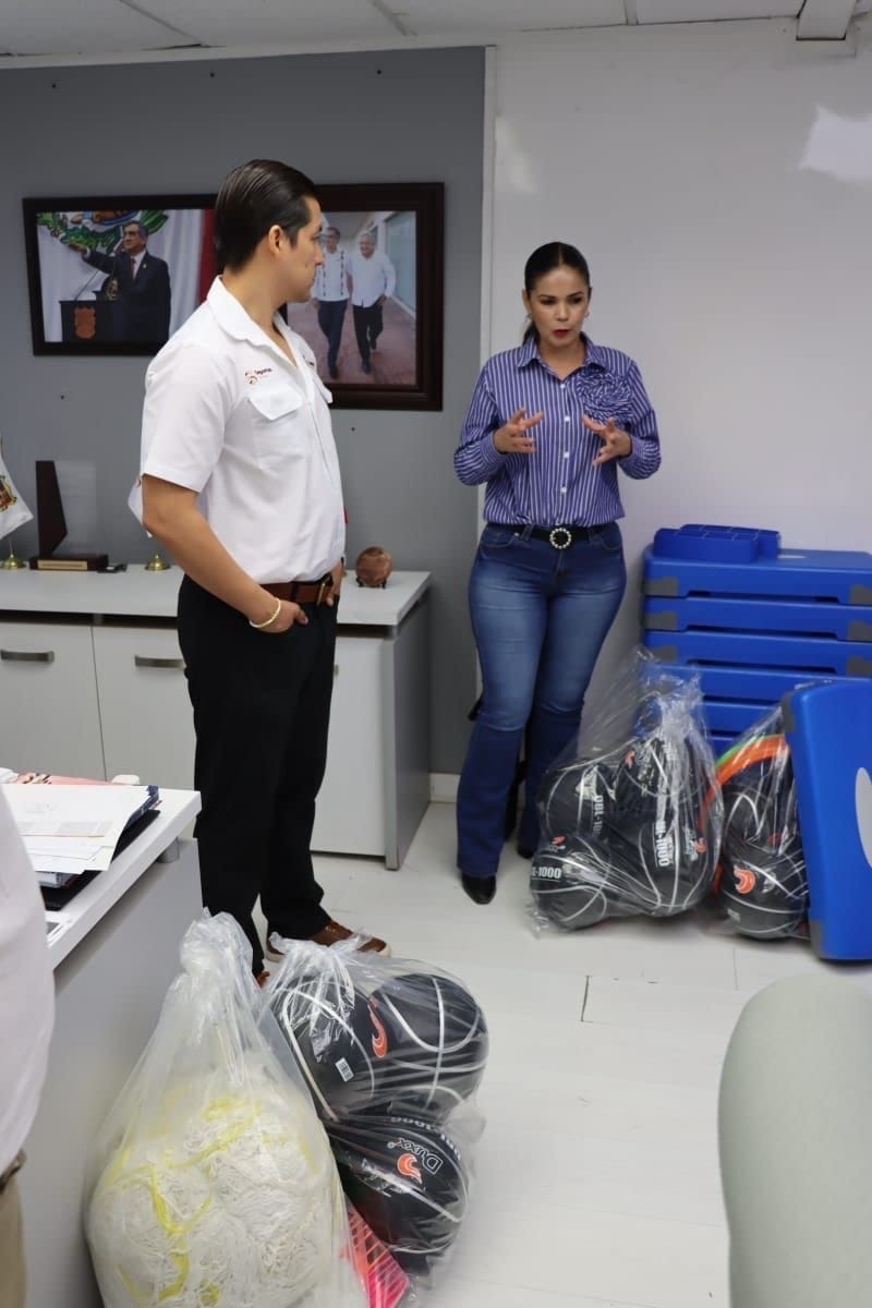 En la entrega del material estuvieron presentes Santos Lozano Cedillo, director de Desarrollo del Deporte, y Lidio Saldívar, director de Deportes de Jiménez.