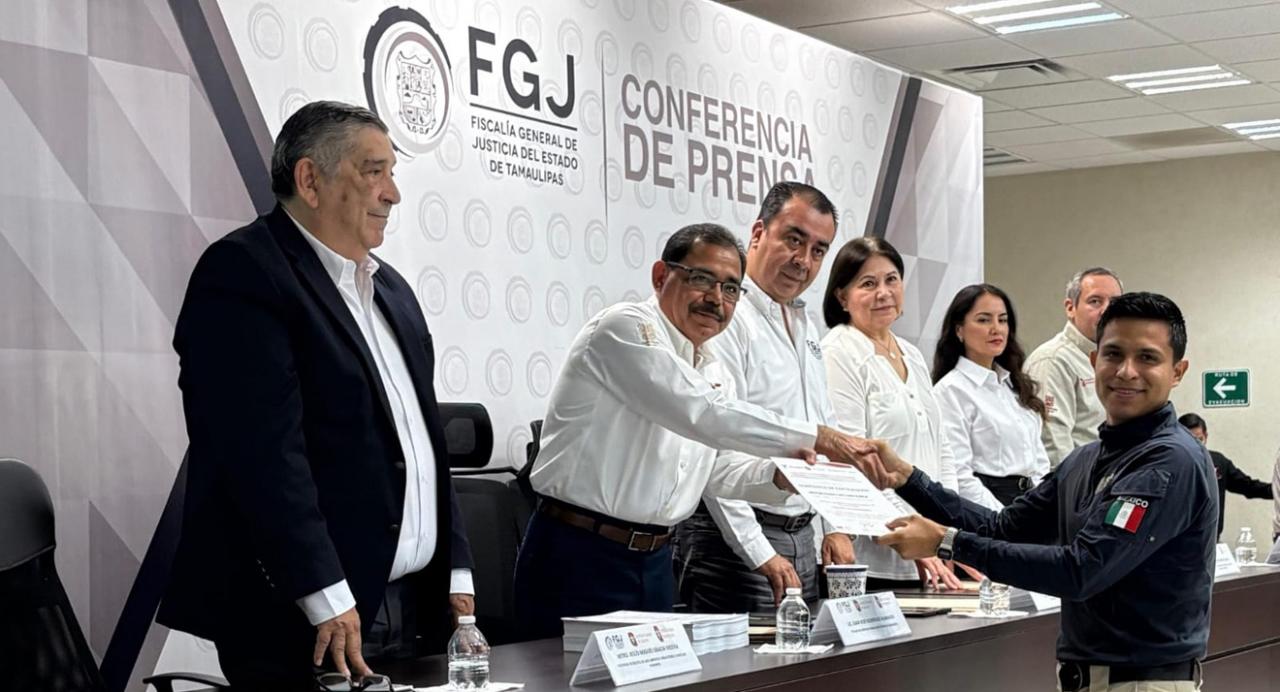 El evento se llevó a cabo en la Sala de Juicios Orales de la propia FGJ y contó con la presencia del director general del ITM, Juan José Rodríguez Alvarado; el vicefiscal de Alto Impacto y de Violaciones a Derechos Humanos, Jesús Miguel Gracia Riestra; la presidenta de la Comisión Estatal de Derechos Humanos de Tamaulipas, María Tadie Garza Guerra; el subsecretario de Derechos Humanos y Articulación Social de la SEBIEN, Esteban Etienne; la fiscal especializada en la Investigación de Derechos Humanos, Mariana Ramírez Solano, y el director general de Asuntos Jurídicos y de Derechos Humanos de la FGJ, Craig López Olguín.