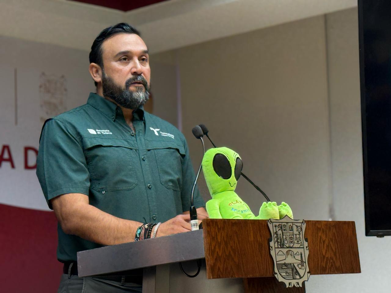 Posteriormente, en las Oficinas de la Representación del Gobierno de Tamaulipas en Nuevo León, y donde se contó con la asistencia de la directora de Turismo de Tampico Karime Cámara Chain, el secretario de Turismo invitó a las y los habitantes de Nuevo León a disfrutar de este carnaval.