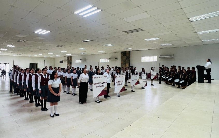 En este certamen regional participaron más de 40 estudiantes, quienes integraron las escoltas de los planteles ubicados en Jiménez, Soto la Marina, San Carlos, El Tampiquito, La Pesca y Guadalupe Victoria.