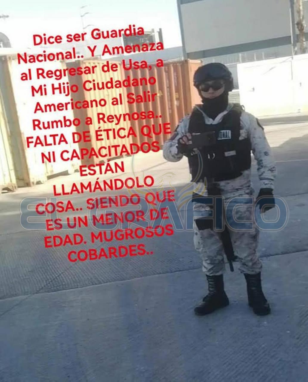 Una madre de familia elevó su enérgica queja y malestar ante lo que calificó como “abuso terrible” de parte de elementos de la Guardia Nacional destacados en el Puente Internacional Reynosa- Hidalgo.