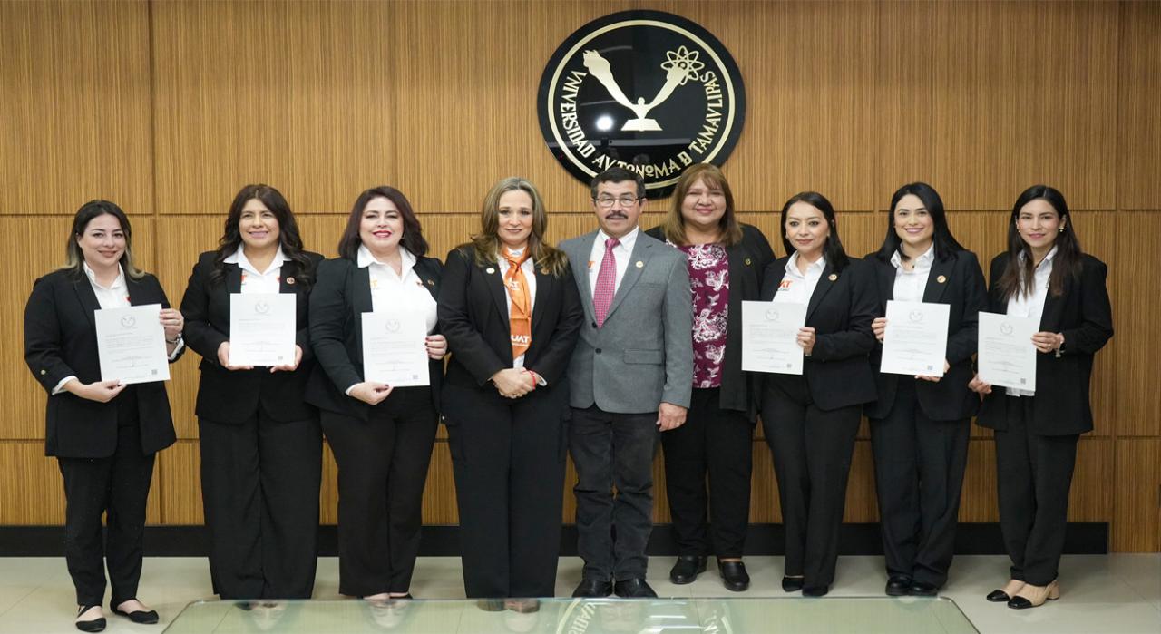El rector de la Universidad Autónoma de Tamaulipas, Dámaso Anaya Alvarado, entregó nombramientos a las titulares que integran las áreas de la Dirección General de Familia UAT, deseándoles éxito en las tareas que desempeñan como parte de los diversos programas que ofrece la casa de estudios al servicio de la niñez y juventud.