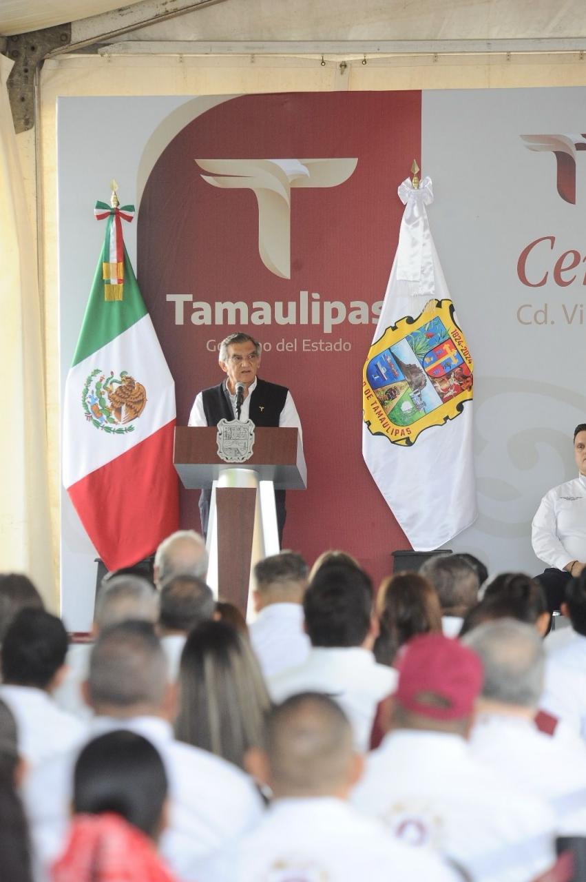 Acompañaron al gobernador en este evento: Héctor Joel Villegas González, secretario general de Gobierno; general DEM Enrique García Jaramillo, comandante de la 48a. Zona Militar; comisario Francisco Alvarado Terán, coordinador Estatal de la Guardia Nacional en Tamaulipas; diputado Humberto Prieto Herrera, presidente de la Junta de Coordinación Política del Congreso del Estado; diputada Cynthia Jaime Castillo, presidenta de la Mesa Directiva del Congreso local y magistrado Hernán De la Garza Tamez, presidente del Supremo Tribunal de Justicia, además de personal de Protección Civil, del Centro Regional de Urgencias Médicas y de la delegación estatal de la Cruz Roja.