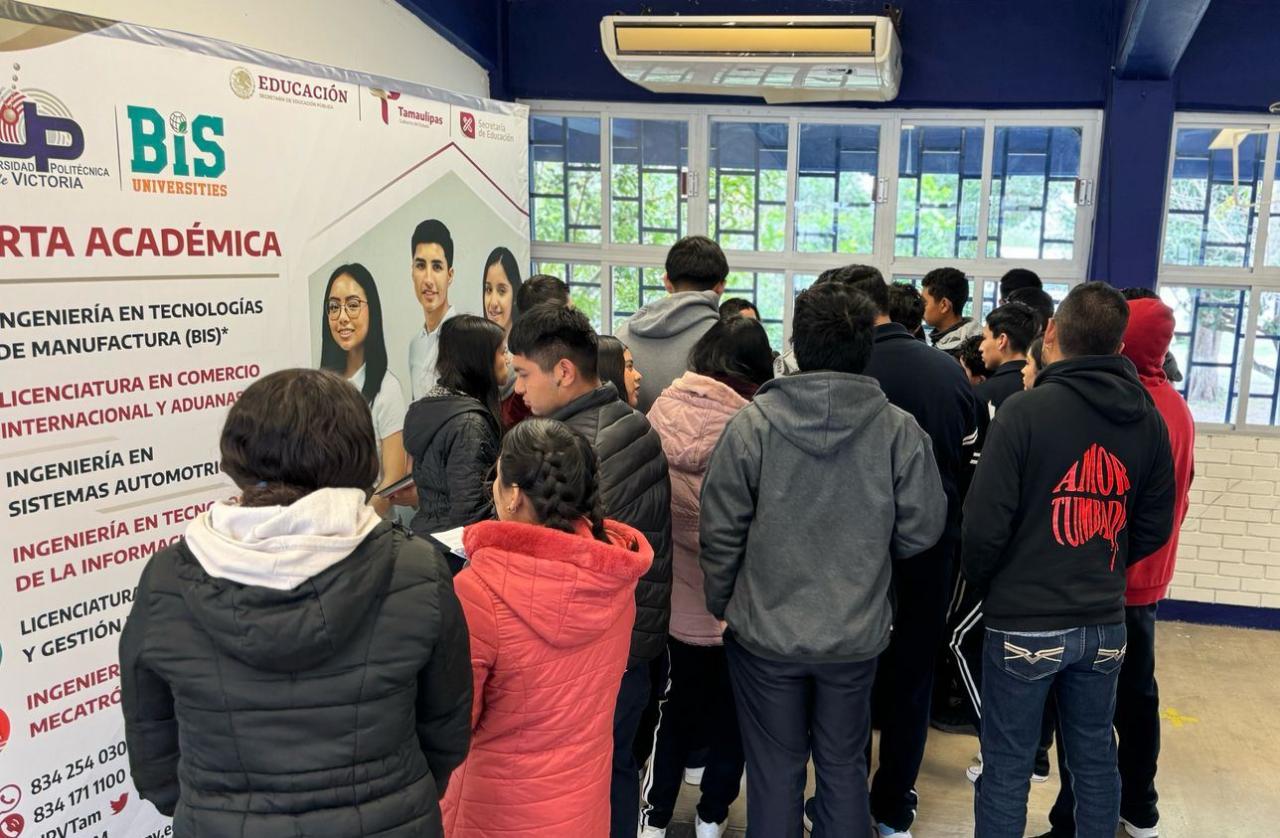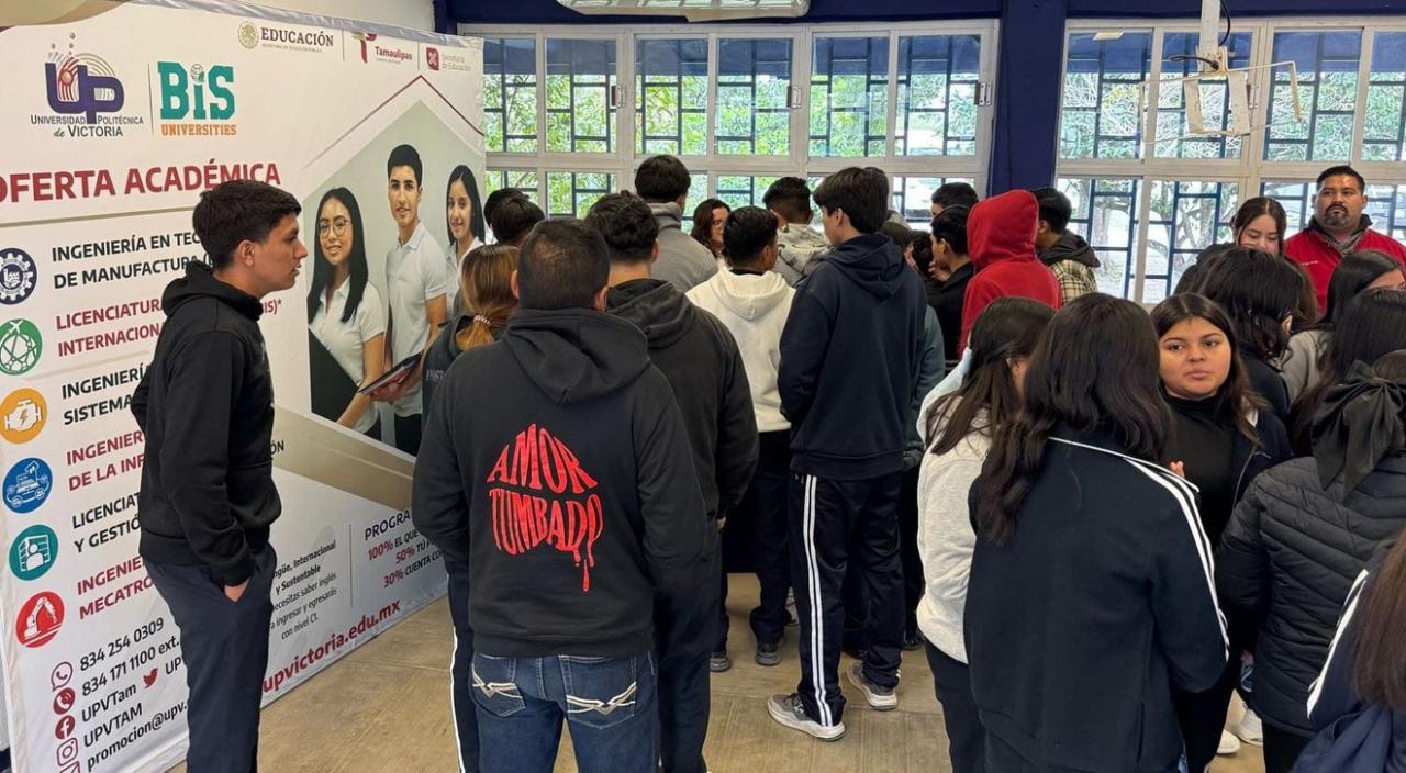 Güemez, Tamaulipas.– Con el propósito de que las y los jóvenes que están a punto de culminar su educación media superior conozcan la oferta académica con la que cuenta la Universidad Politécnica de Victoria (UPV), la insitución participó en la Feria Vocacional “Construyendo mi yo del futuro 2025”, organizada por el Centro de Estudios de Bachillerato “Maestro Lauro Aguirre” (CEB 6/15).