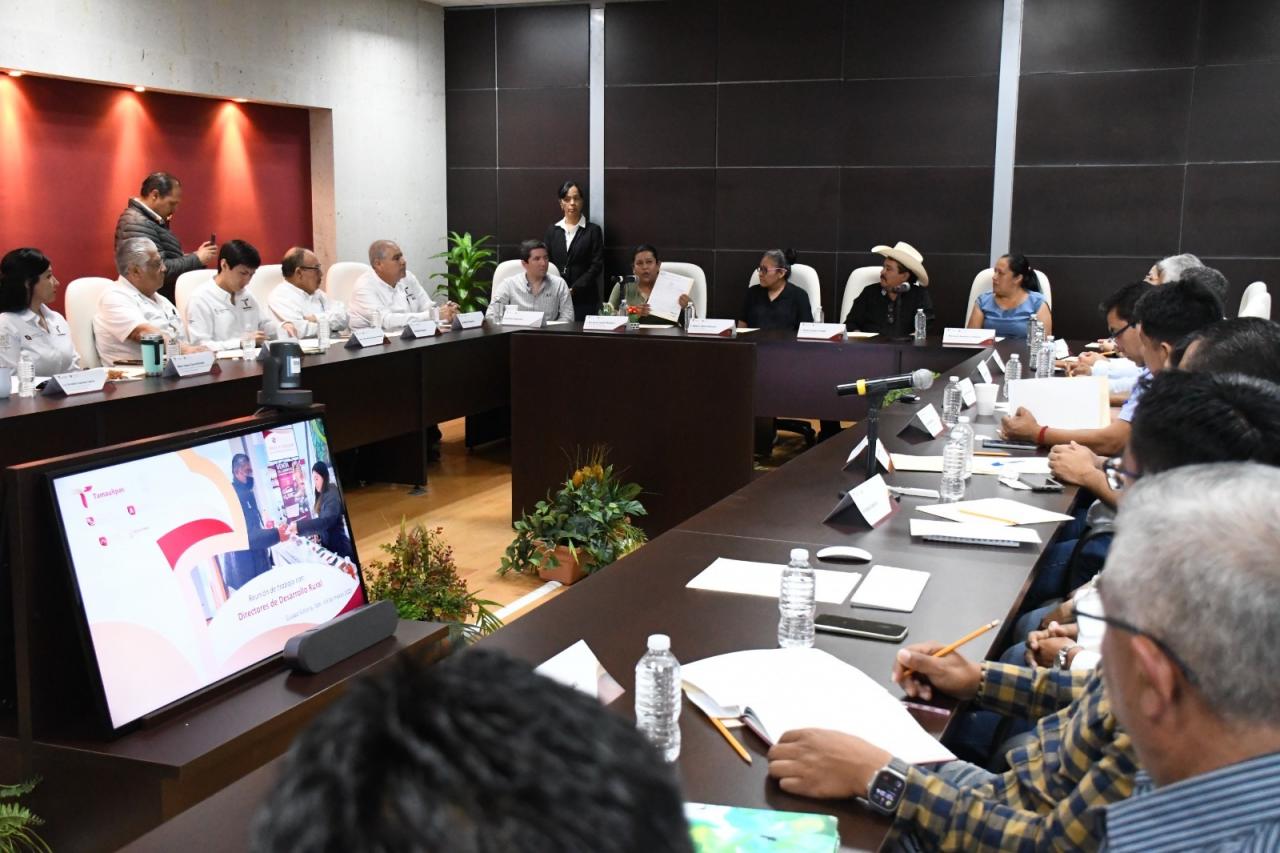 Ciudad Victoria, Tamaulipas. – Con la firme intención de dar impulso a las microempresas rurales mediante estrategias de crecimiento sostenible que permitan su formalización, la Secretaría de Desarrollo Rural, Pesca y Acuacultura realizó una reunión de trabajo con dependencias estatales, directores de Desarrollo Rural de ocho municipios y microempresas del sector.