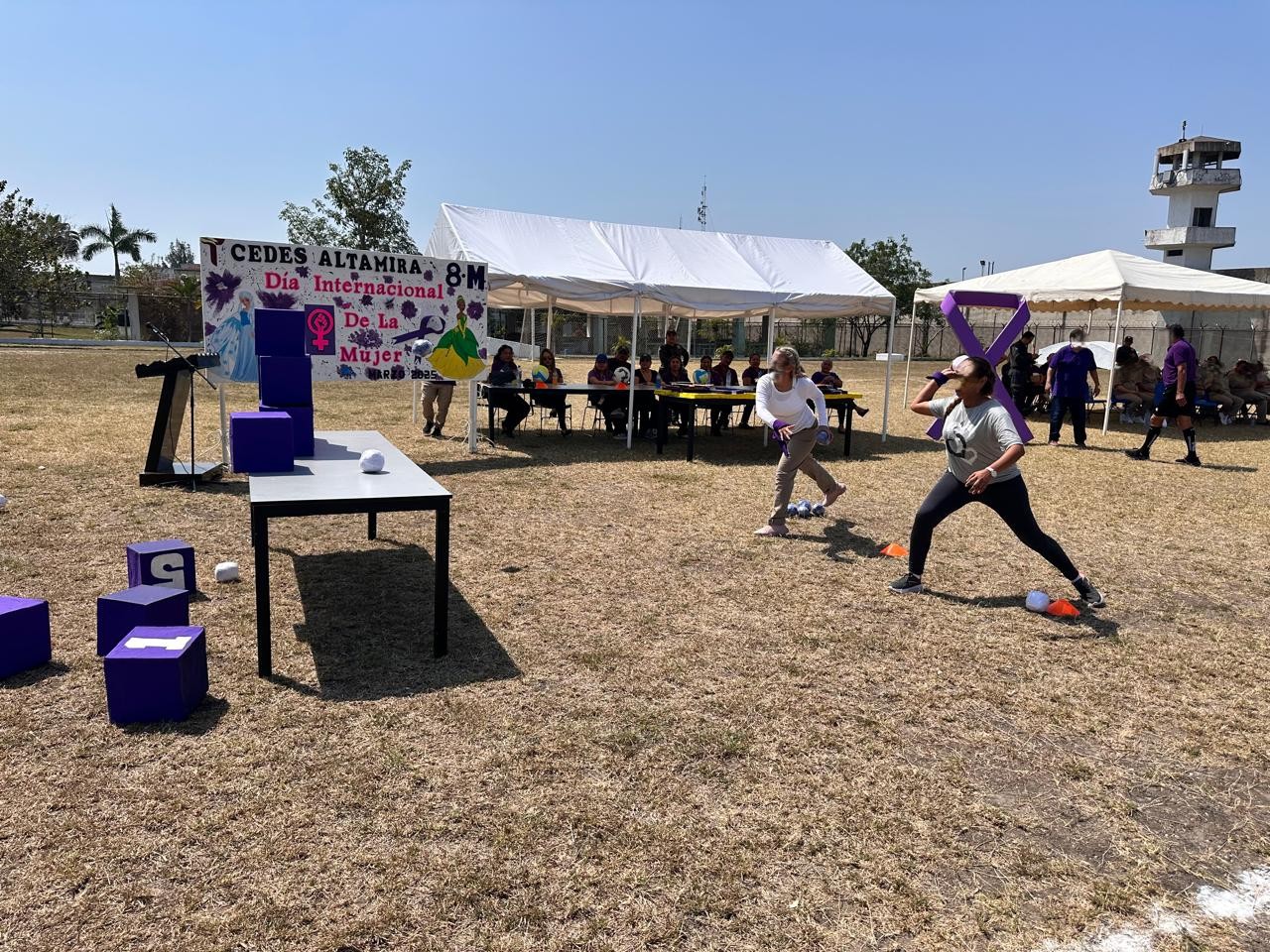 En Altamira, la actividad física fue protagonista con un rally deportivo, donde las mujeres participaron en pruebas de velocidad, fuerza y coordinación, fomentando la convivencia y el trabajo en equipo.