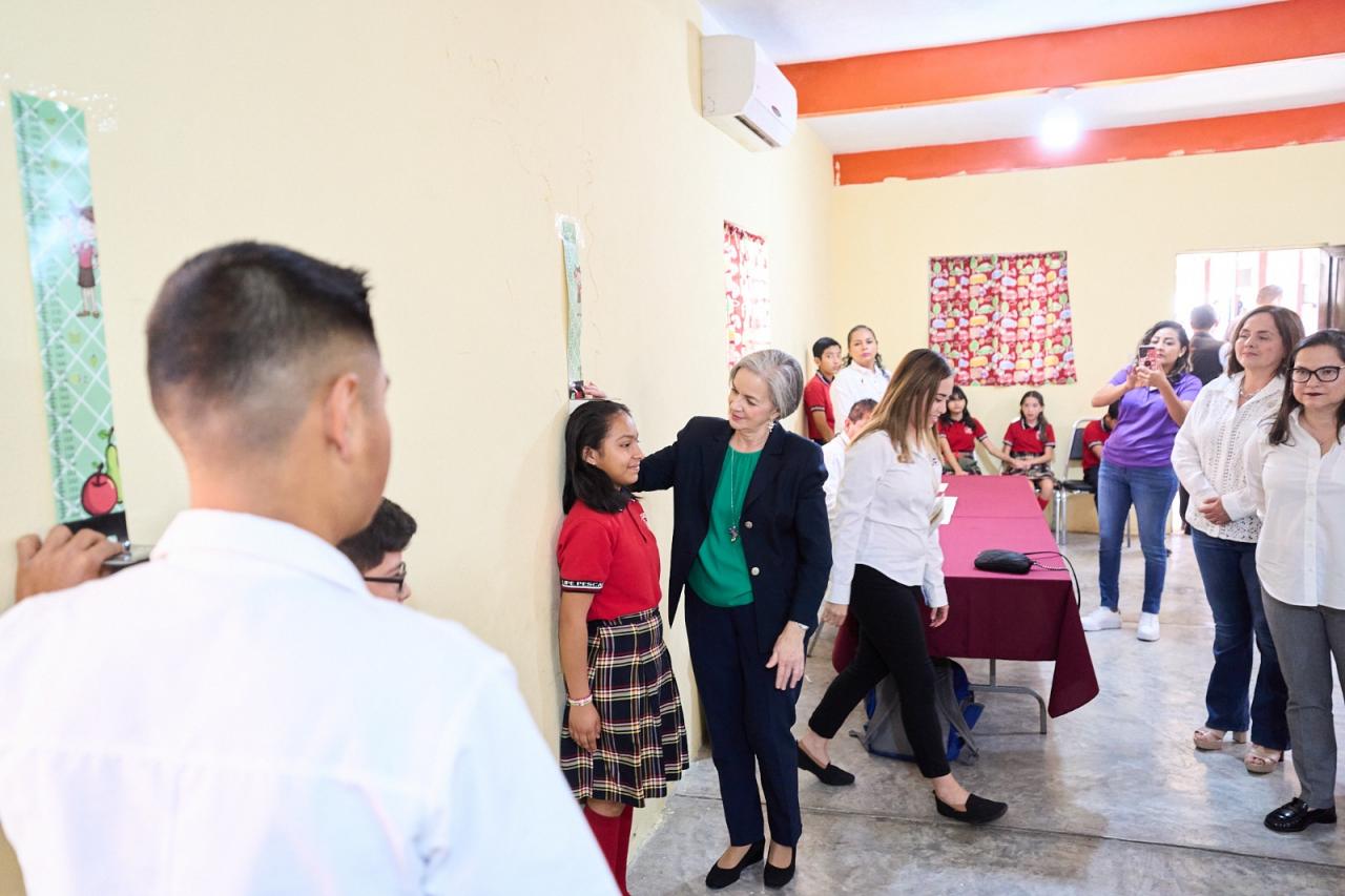 “Lo más importante con este programa es que podamos ver si necesitan lentes para leer o para ver de lejos, si traen alguna caries, si no comen bien y les puede doler su estómago, o se sienten cansados y tristes porque no comen bien. Todo eso puede hacernos sentir mal, entonces lo que vamos a hacer es aprender a cuidarnos”, dijo María de Villarreal a los alumnos, padres de familia y maestros.