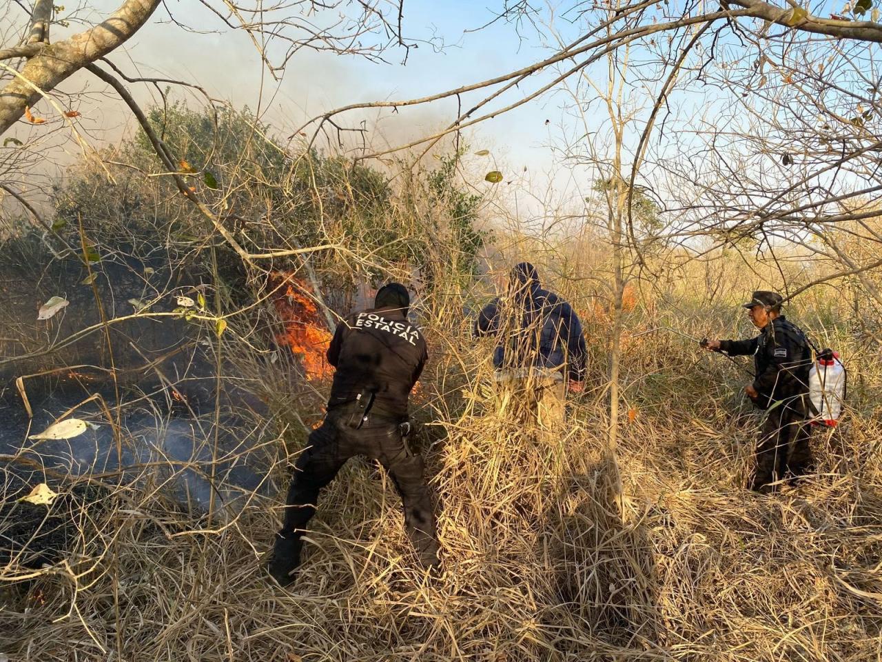 Ciudad Victoria, Tamaulipas.- En apoyo a las acciones implementadas por el gobernador Américo Villarreal a través del personal de Protección Civil Estatal para sofocar incendios forestales y de pastizales activos en diferentes municipios, la Secretaría de Seguridad Pública de Tamaulipas (SSPT), a través de la Guardia Estatal realiza diferentes acciones en 11 municipios.
