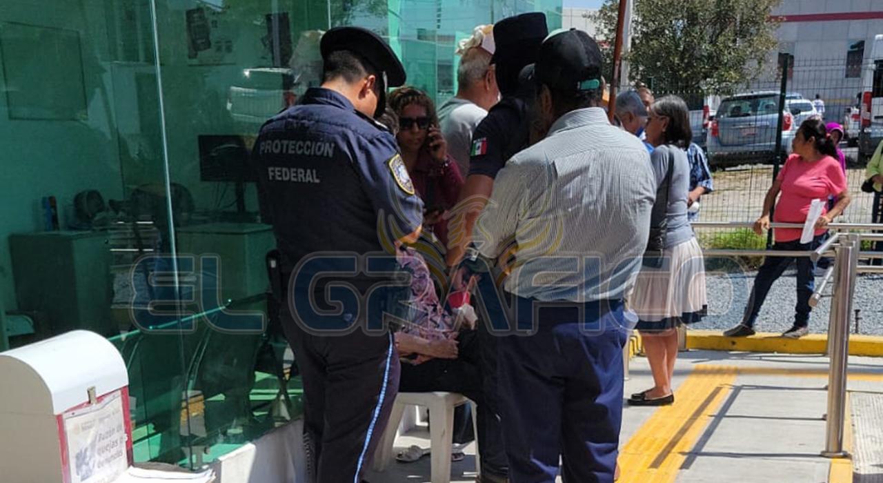 Desmayos, colapso por fatiga de las personas que tienen que esperar varias horas en espera para pasar a los cajeros a cobrar su pensión bimestral.