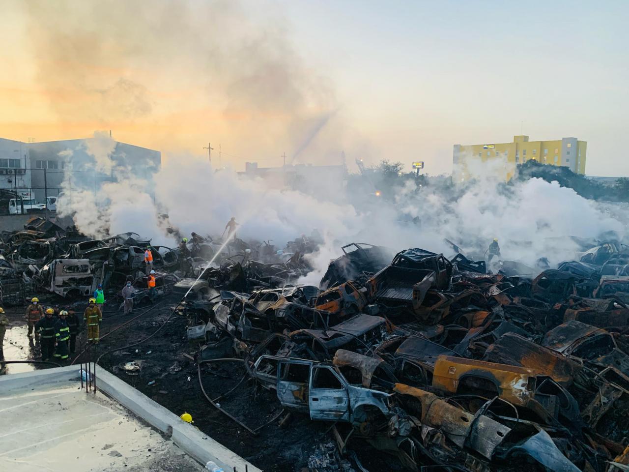 Derivado de las altas temperaturas y las ráfagas de viento registradas durante la hora del incendio, este se extendió a un depósito de vehículos, los cuales desprendían grandes cantidades de humo y una fuerte radiación de fuego que afectaba viviendas aledañas.