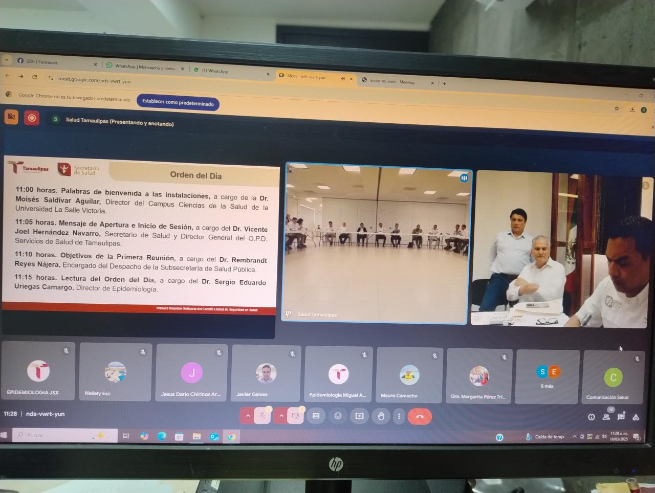 La primera reunión ordinaria del Comité Estatal de Seguridad en Salud, se llevó a cabo en las instalaciones de la Universidad La Salle de esta ciudad y se contó con la asistencia del subdelegado médico del ISSSTE, Ernesto Lavín Hernández; el subsecretario de Salud Pública, Rembrandt Reyes Nájera; la subdirectora de Enfermería, Irma Barragán Alvarado; el representante de la 48/A Zona Militar, general de Brigada M.C. Oscar Escalante Piña; el representante de la Primera Zona Naval, capitán del Servicio Sanidad Naval MCD, José Luis Cruz Pérez y el director de Epidemiología Estatal, Sergio Uriegas Camargo.
