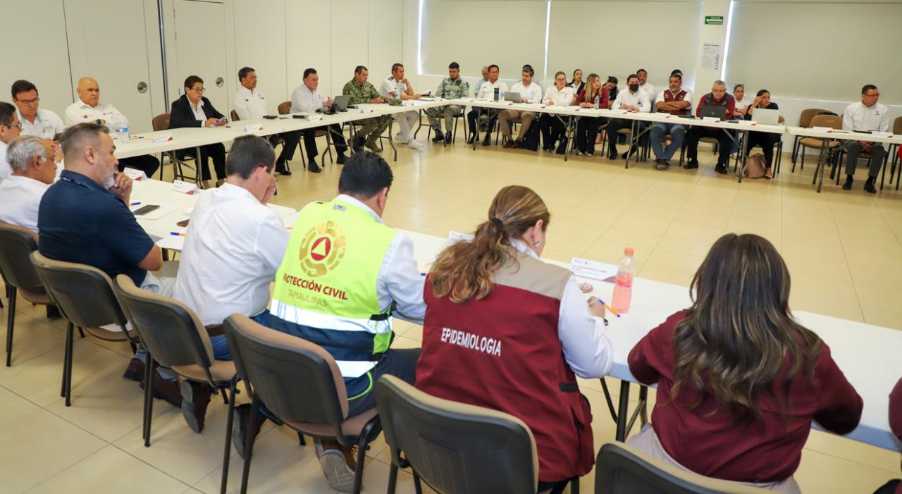 Entre los temas que se abordaron, destacan los avances de las acciones que se han realizado para mitigar el impacto que podría registrar el dengue en Tamaulipas, el cual a la fecha registra 191 casos confirmados de la enfermedad y que en su mayoría se han presentado en Tampico, Madero y Altamira, para ello se han realizado campañas intensivas de abatización y descacharrización, así como aplicando la estrategia de lava, tapa, voltea y tira en los hogares.