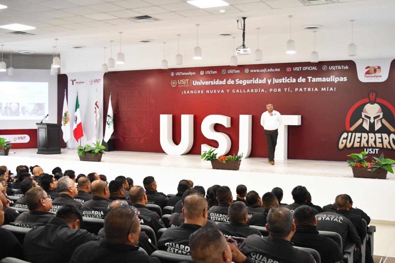 Ciudad Victoria, Tamaulipas.- En atención a las recomendaciones emitidas por la Comisión Nacional de Derechos Humanos (CNDH) personal de la Guardia Estatal asistió a la conferencia denominada ‘’Aspectos Generales de los Derechos Humanos’’ impartida en el Auditorio de la Universidad de Seguridad y Justicia de Tamaulipas (USJT).
