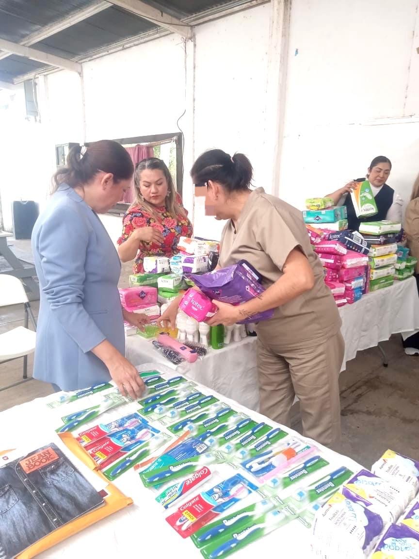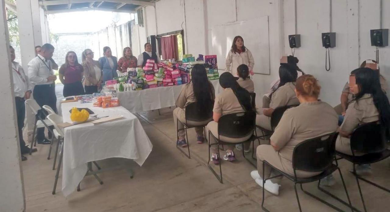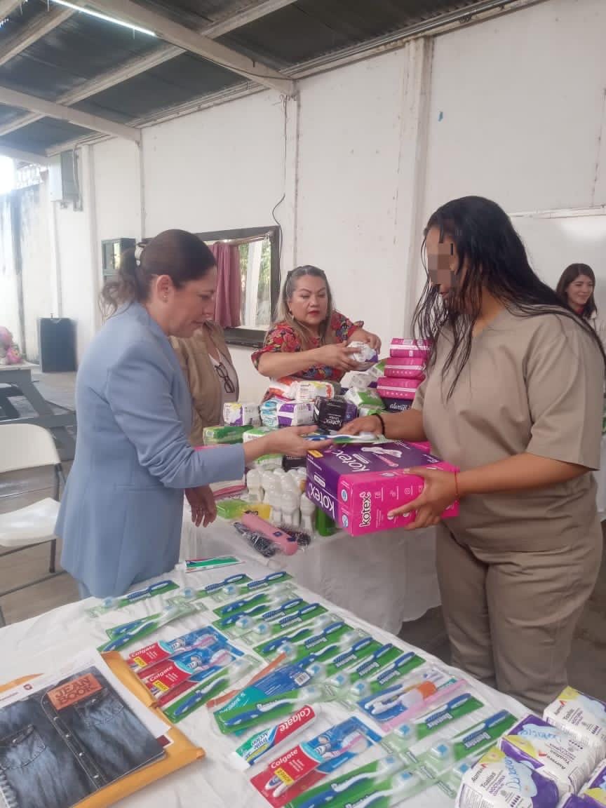 El donativo consistió en toallas sanitarias, artículos de higiene personal y juguetes para las y los menores que viven con sus madres en el módulo femenil.