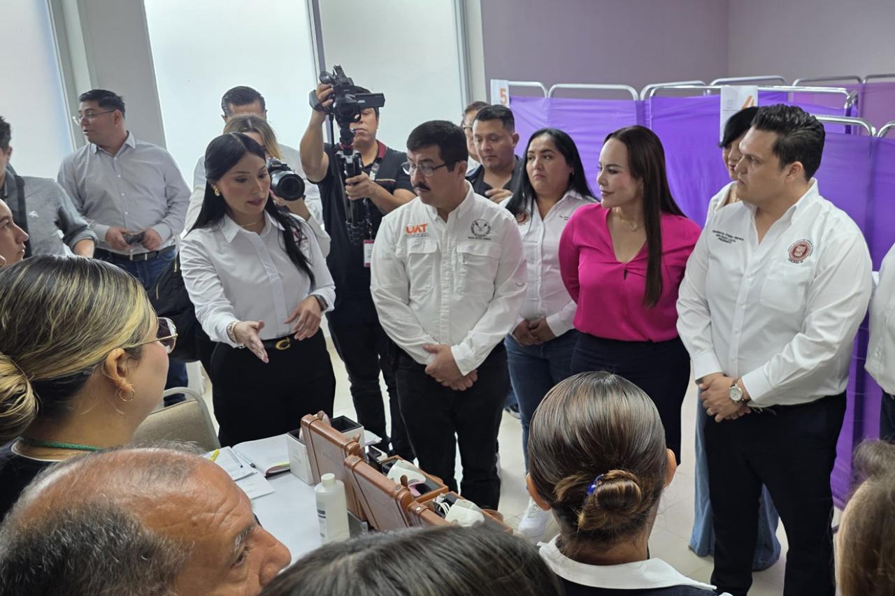 La comitiva hizo un recorrido por los módulos de la brigada médica que se lleva a cabo los días 24 y 25 de marzo en el Edificio Administrativo de la Facultad de la UAT en Nuevo Laredo, ofreciendo una amplia gama de servicios de salud.