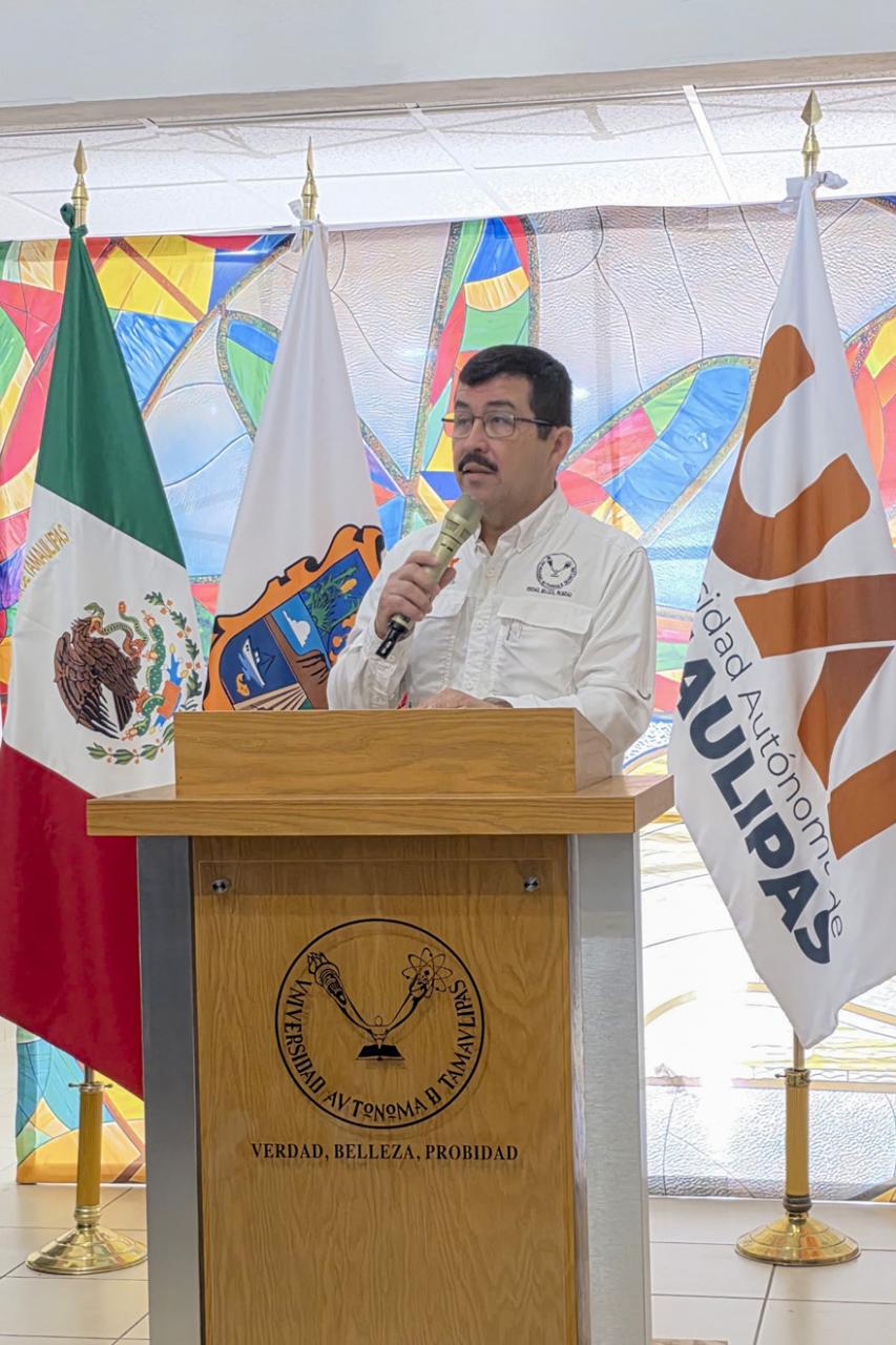 Acompañado del director del plantel universitario sede de este evento, René Adrián Salinas Salinas, el rector dio la bienvenida a diputadas y diputados, así como a las autoridades municipales, resaltando su agradecimiento a la Facultad de Comercio de Nuevo Laredo por facilitar esta jornada al servicio de toda la comunidad.