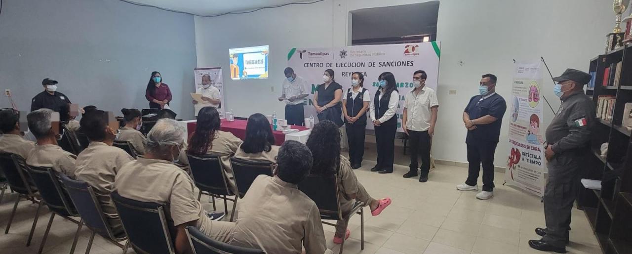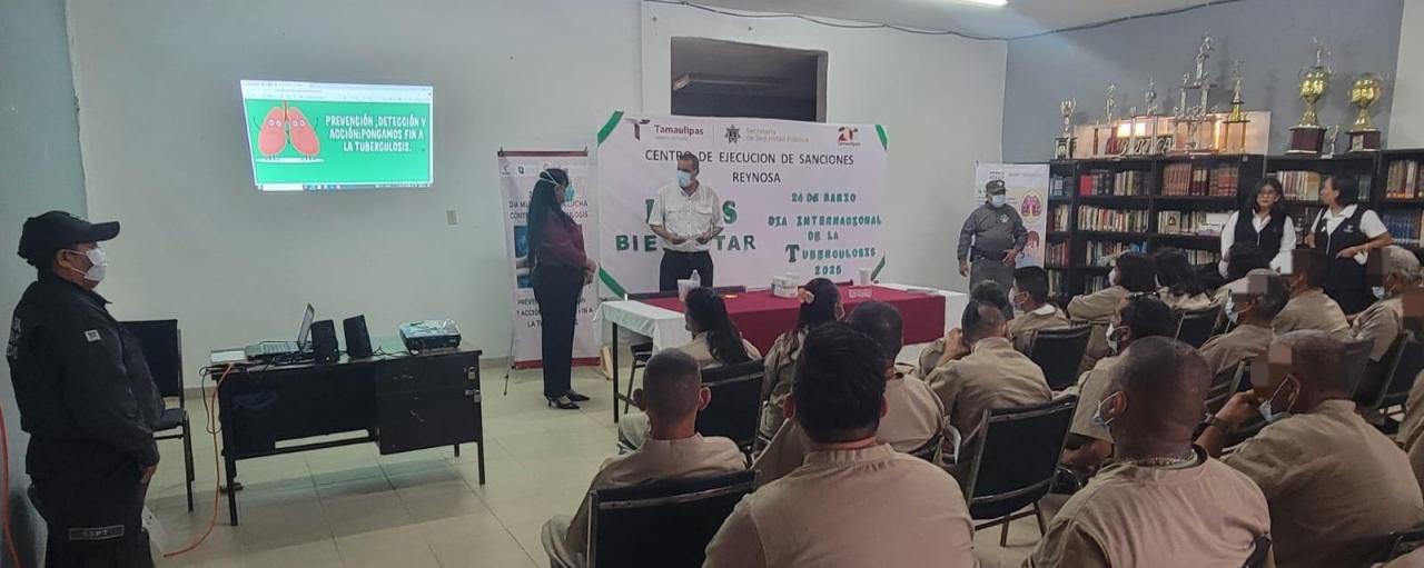 Reynosa, Tamaulipas.- En el marco del Día Internacional de la Tuberculosis, personal de la Jurisdicción Sanitaria Número Cuatro acudió al Centro de Ejecución de Sanciones (CEDES) del municipio de Reynosa para llevar a cabo una campaña de detección oportuna de esta enfermedad.