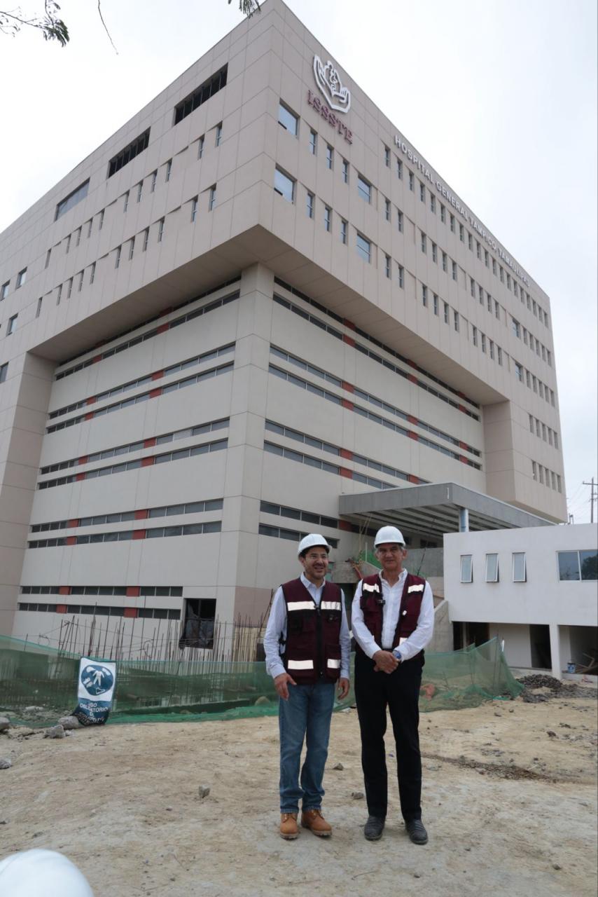 Tampico, Tamaulipas.- Acompañado del director general del ISSSTE, Martí Batres, el gobernador Américo Villarreal Anaya realizó una visita de supervisión a la construcción del nuevo hospital general del Instituto de Seguridad y Servicios Sociales de los Trabajadores del Estado, que dará servicios de alta calidad a toda la población del sur de Tamaulipas, norte de Veracruz y la huasteca potosina.