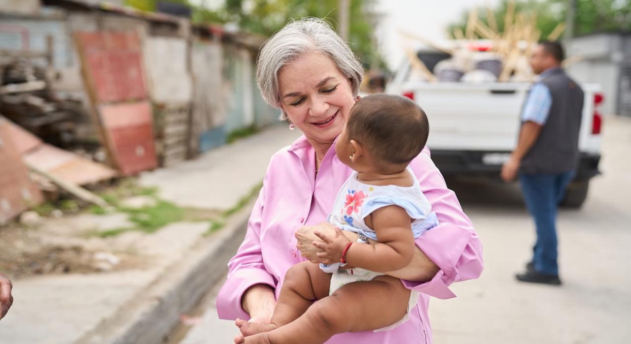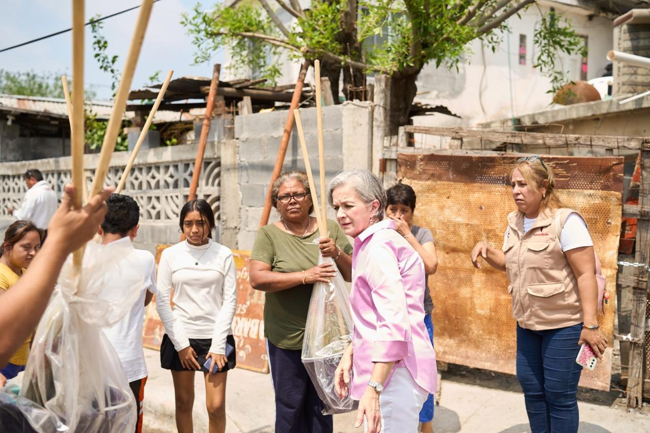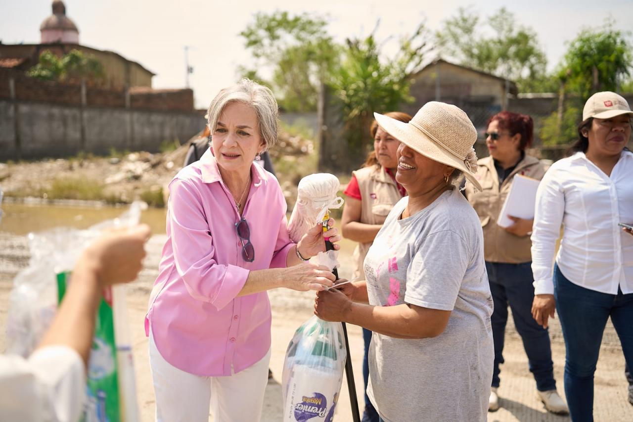 Reynosa, Tamaulipas.- La presidenta del Sistema DIF Tamaulipas, la doctora María de Villarreal, realizó un recorrido por los sectores afectados por lluvias e inundaciones en la ciudad de Reynosa, donde entregó paquetes de limpieza para el hogar e higiene personal, a fin de apoyar a las familias damnificadas en el restablecimiento de sus condiciones de bienestar.