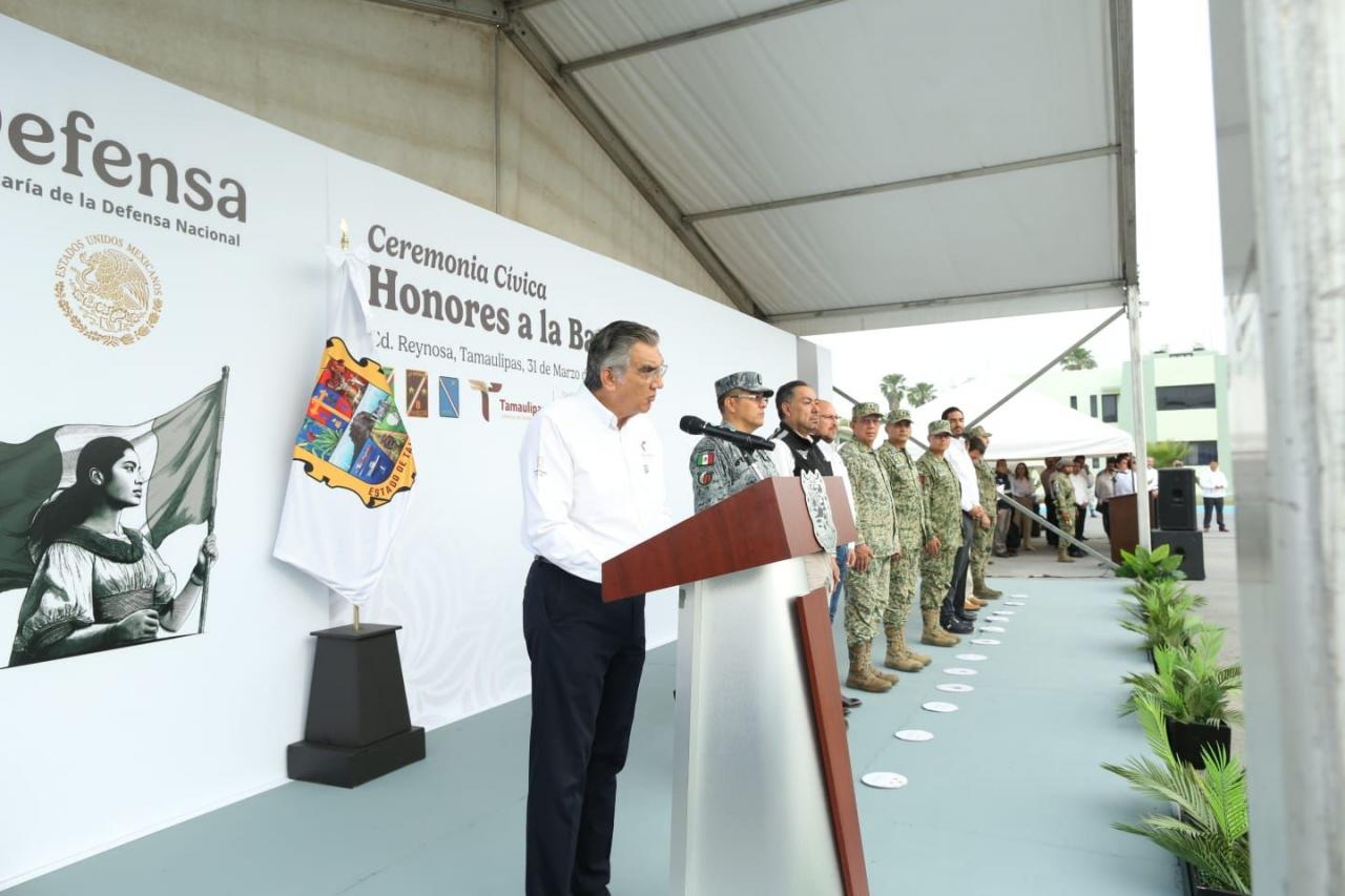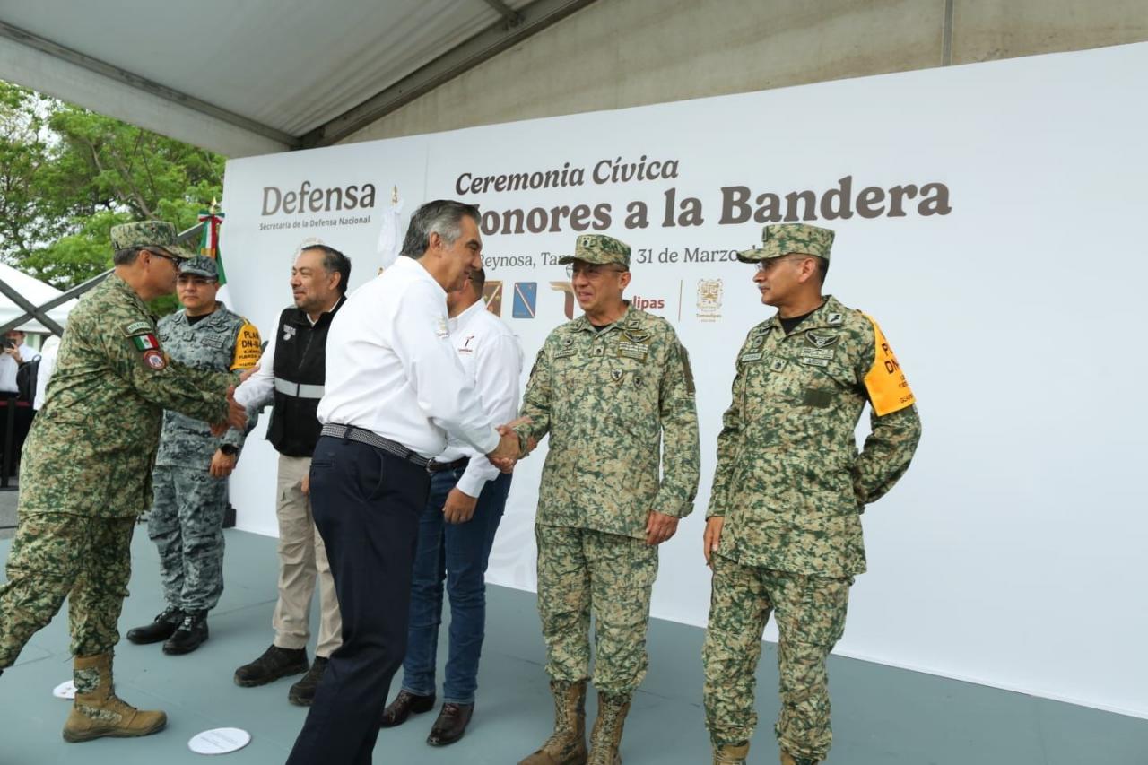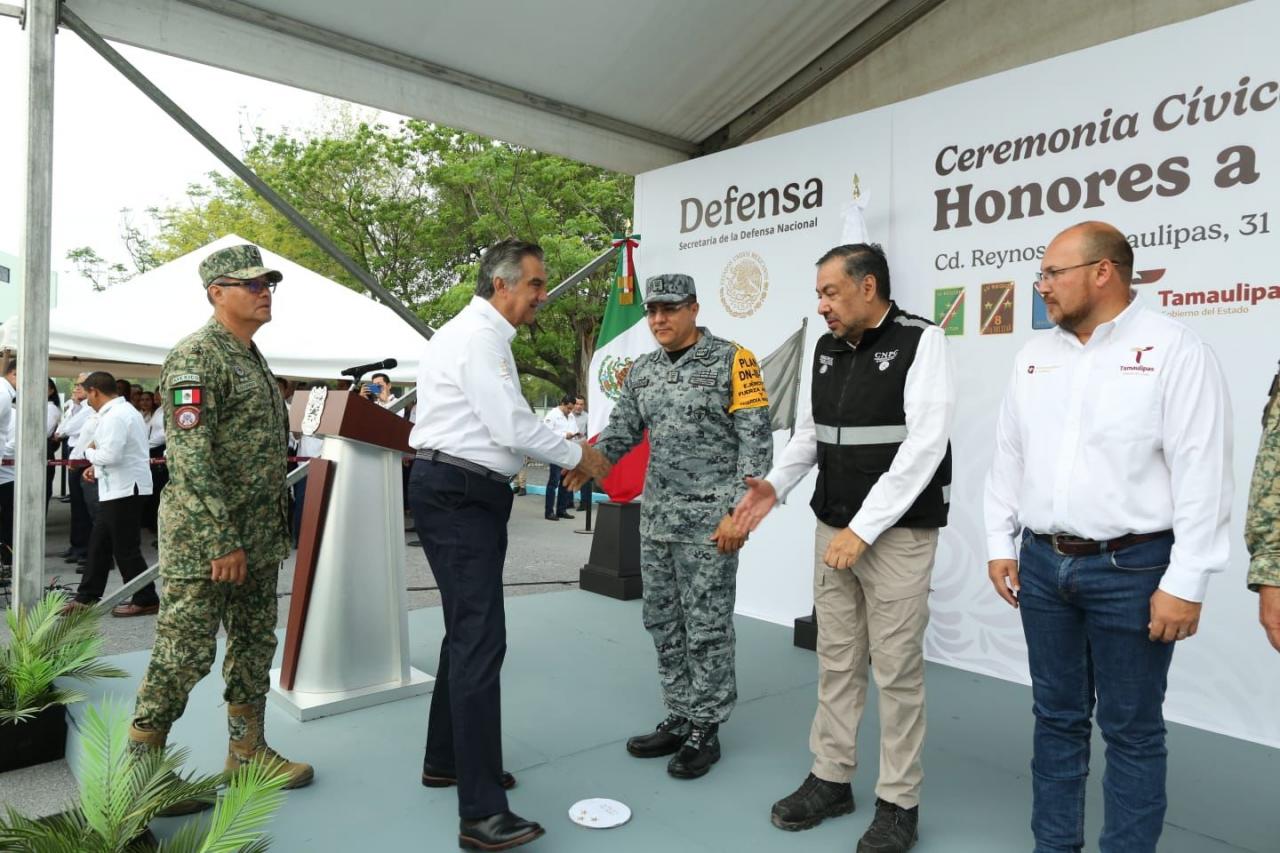 "En nombre del pueblo y gobierno de Tamaulipas, por este conducto, general Diplomado de Estado Mayor, comandante de la IV Región Militar, haga usted el favor de expresar nuestra gratitud y reconocimiento a las y los elementos del Ejército Mexicano, de la Guardia Nacional, de las Fuerzas Federales y de la Marina Armada de México por su presencia y colaboración en estos objetivos de nuestra convivencia", expresó el mandatario, quien hizo extensivo su reconocimiento a la Guardia Estatal.