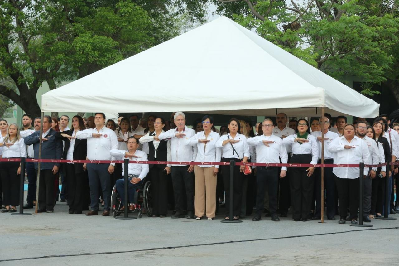 Al presidir la ceremonia de izamiento de la bandera en las instalaciones del XIX Regimiento de Caballería Motorizada, el gobernador destacó el apoyo directo y presencial de la coordinadora nacional de Protección Civil, Laura Velázquez Alzúa, y la visita, el día de ayer, de la secretaria de Bienestar, Ariadna Montiel Reyes, para coordinar juntos la respuesta institucional y comunitaria con el fin de, ante todo, proteger vidas y poner a salvo a la población en riesgo.