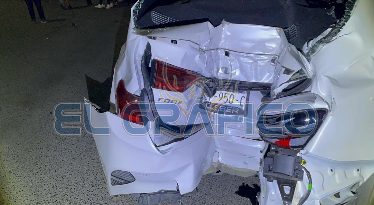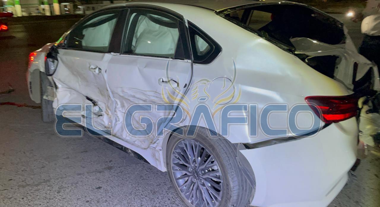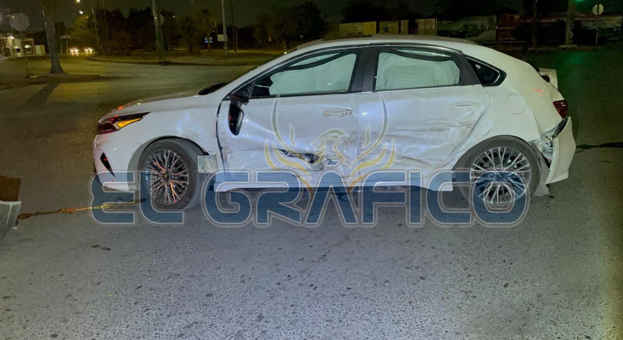 Tras ser impactado por el Focus, el automóvil Kia dio un giro y salió proyectado para estrellarse contra la base metálica del semáforo.