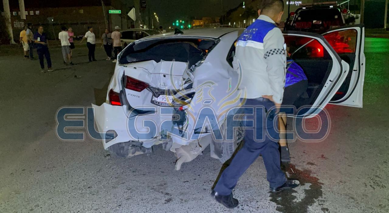 Un conductor en presunto estado de ebriedad ocasionó un aparatoso choque que dejó cuantiosos daños materiales en el crucero del Bulevar Fidel Velázquez y José Sulaimán Chagnón.