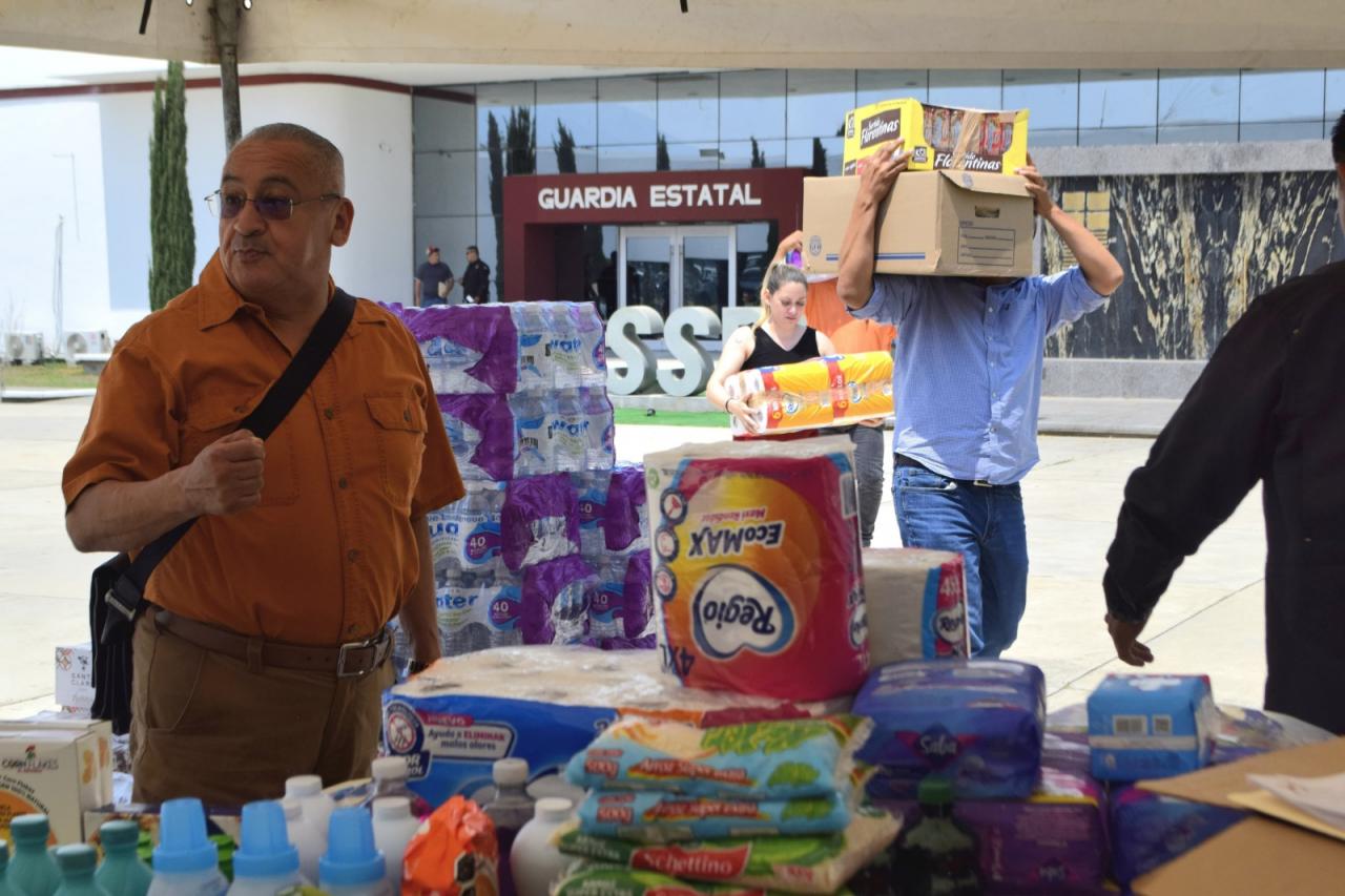 Ciudad Victoria, Tamaulipas.- A través del Centro de Acopio instalado en el Complejo Estatal de Seguridad Pública, personal de las diferentes delegaciones y coordinaciones de la Guardia Estatal continúan aportando sus donativos, que serán destinados a la población afectada por inundaciones en municipios fronterizos.