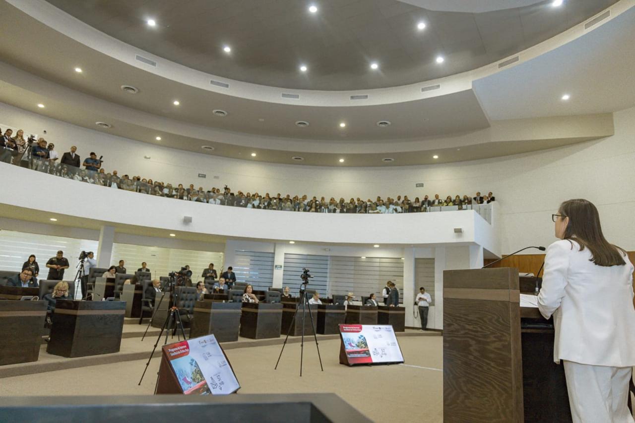 La funcionaria, quien compareció ante el Pleno de la Sexagésima Sexta Legislatura como parte del Tercer Informe de Gobierno del gobernador Américo Villarreal Anaya, agradeció a las y los legisladores por abrir el espacio de diálogo y rendición de cuentas, como lo establece la ley.