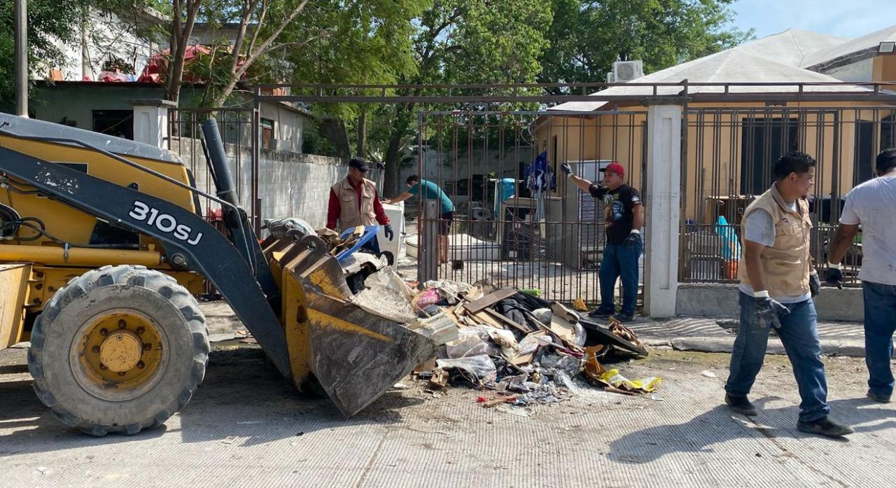 Reynosa, Tamaulipas.– En el tercer día de la brigada en Reynosa, realizada por el Gobierno de Tamaulipas, en la que participan la Secretaría de Bienestar Social, el Sistema DIF Tamaulipas, la Secretaría de Obras Públicas y el Ejército Mexicano, se mantienen las labores de apoyo a la población afectada por las inundaciones en este municipio.