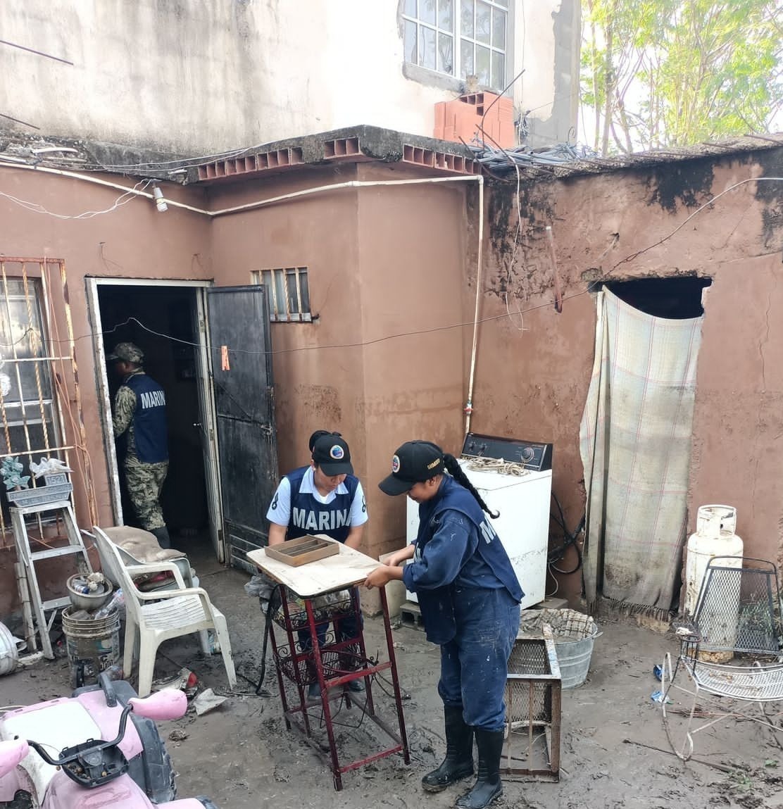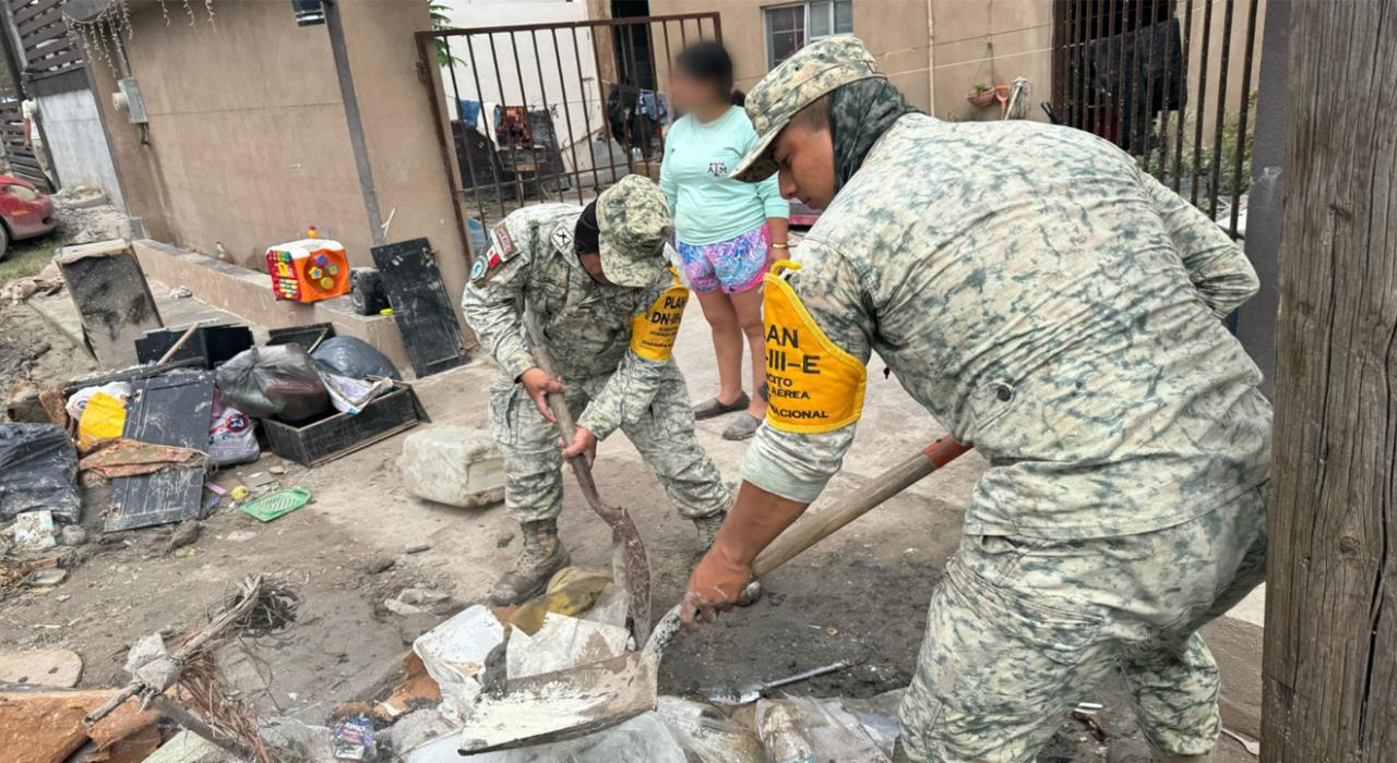 Defensa, Semar y GN, en estrecha coordinación con las autoridades estatales y municipales, trabajan en las labores de remoción de lodo, recolección de residuos sólidos, limpieza de calles y viviendas, para restablecer la normalidad.