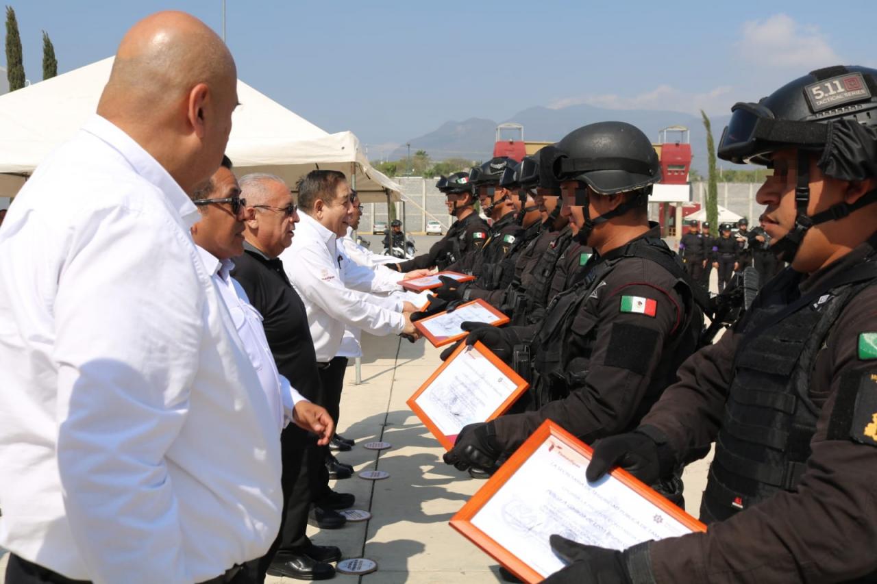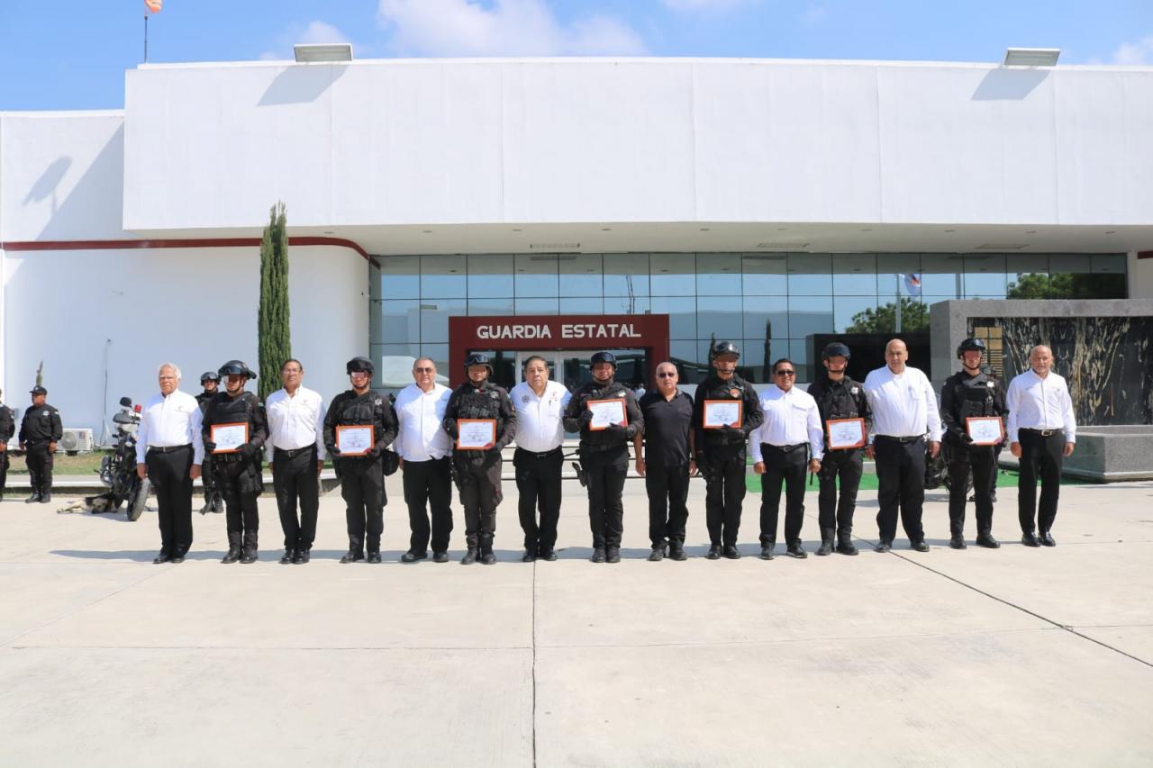 Durante la ceremonia, celebrada en la explanada del Complejo Estatal de Seguridad Pública, se realizó la entrega de constancias a cada uno de los elementos que acreditaron satisfactoriamente dicha formación.
