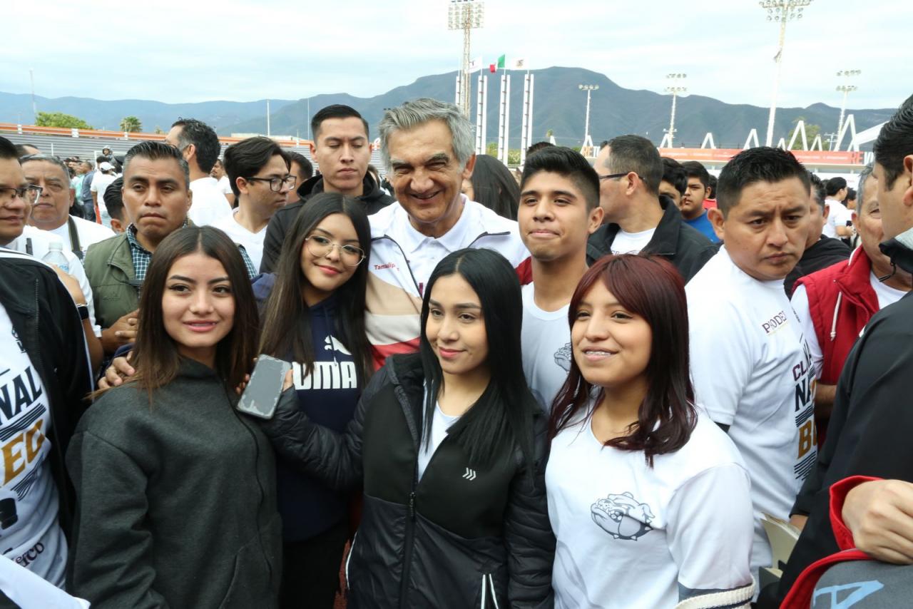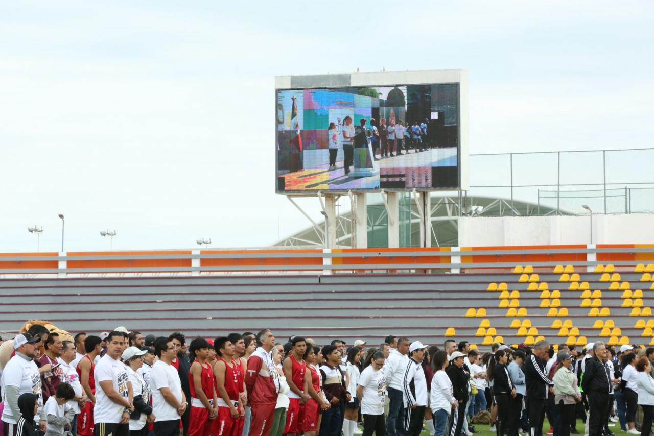 Desde el emblemático estadio Marte R. Gómez, en la capital del estado, el gobernador estuvo al frente de miles de tamaulipecos y tamaulipecas que, desde las plazas públicas del estado, se sumaron simultáneamente mediante la activación física y la promoción del deporte para respaldar la campaña nacional.