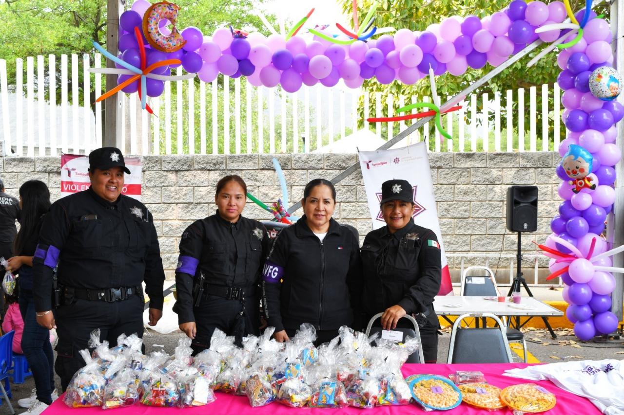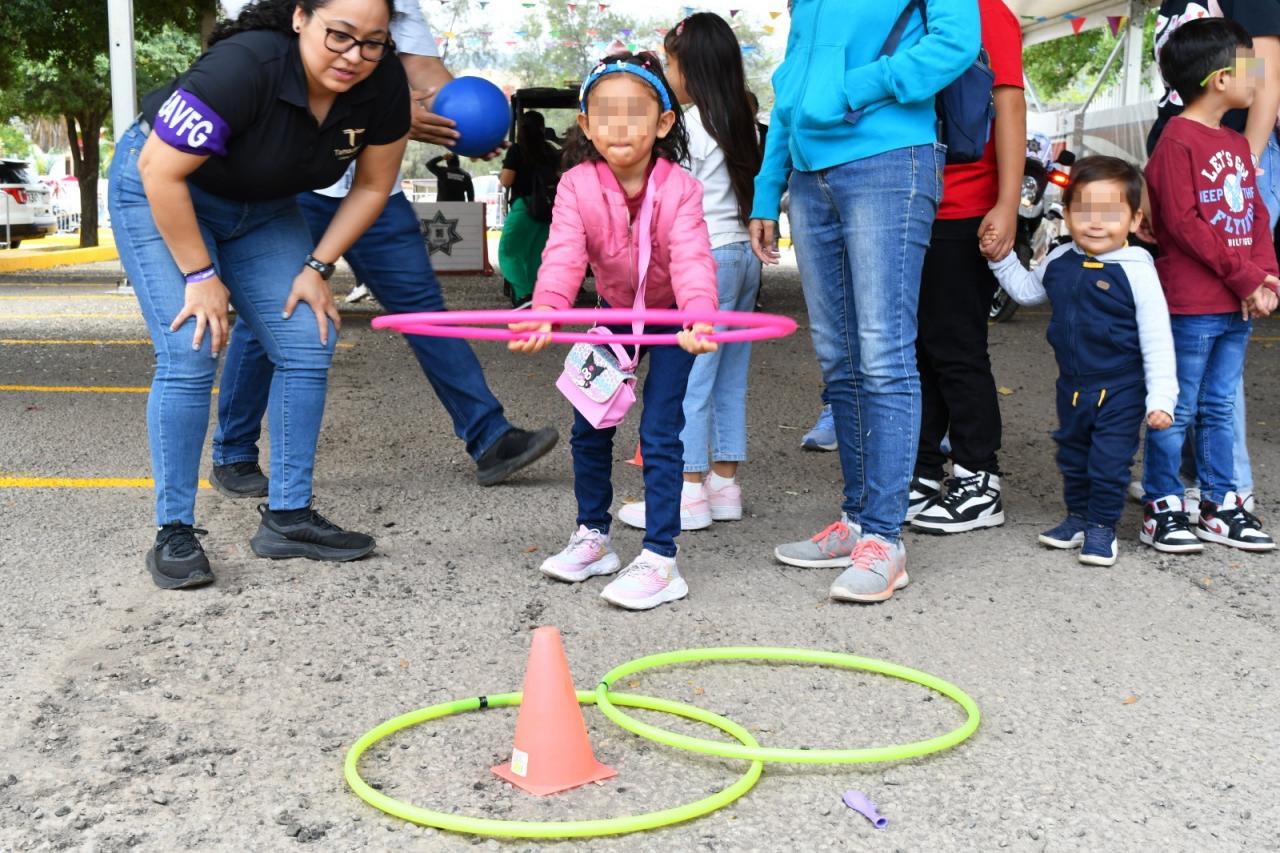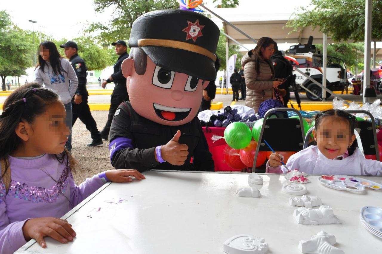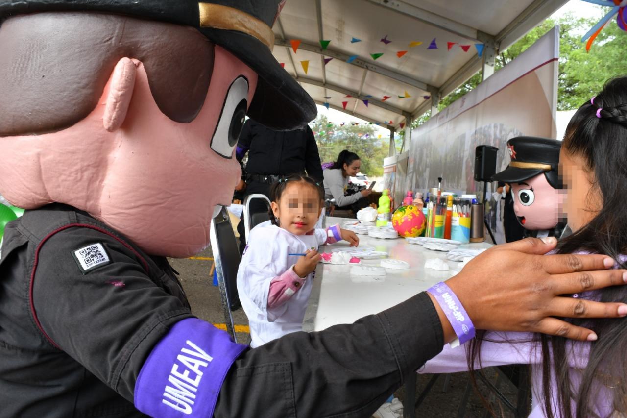 Este año, el stand de la SSPT contó con la participación de la Guardia Estatal de Género, cuyo personal ofreció dinámicas como juegos de preguntas y respuestas, boliche, aros de hula, pintacaritas y espacio de artes visuales.