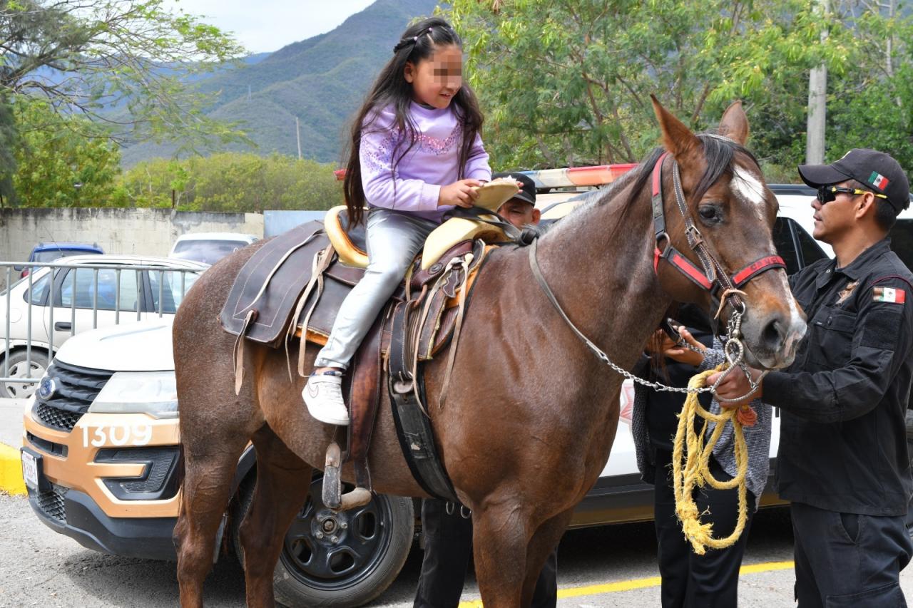 También, la Dirección de Agrupamientos Policiales realizó paseos a caballo y convivencia con los caninos de la Guardia Estatal.