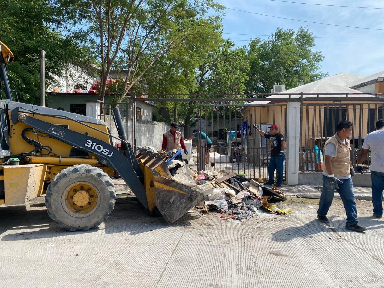 La Secretaría de Obras Públicas participó con 3 retroexcavadoras y 4 camiones para brigadas de limpieza y recolección de residuos, además de apoyar con trabajos de limpieza y desazolve de fosas sépticas en cuatro colonias.