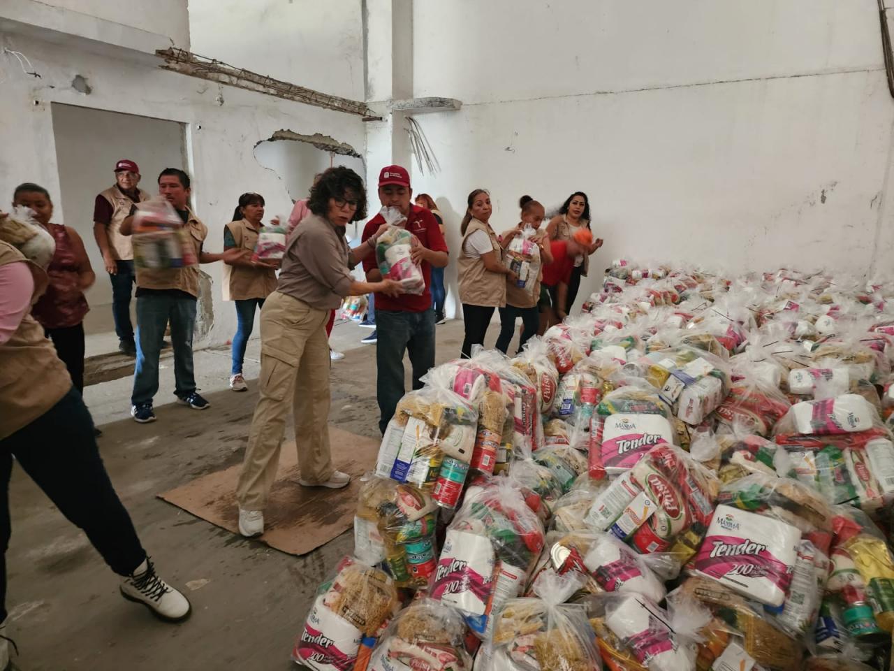 La Secretaría de Economía gestionó la donación de insumos por parte de centros comerciales: Soriana donó 1,137 artículos de limpieza; Bodega Aurrera, 1,297; y CEMEX, 3,877 insumos alimenticios.