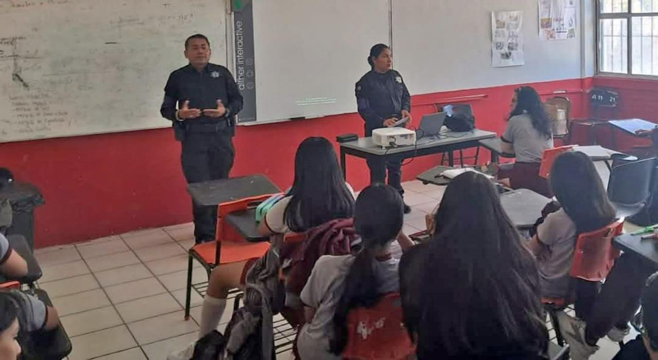 Ciudad Victoria, Tamaulipas.-A través de la proximidad y la información, personal de la Guardia Estatal de Género, previene las adicciones y el acoso escolar entre adolescentes que se encuentran estudiando el nivel básico.