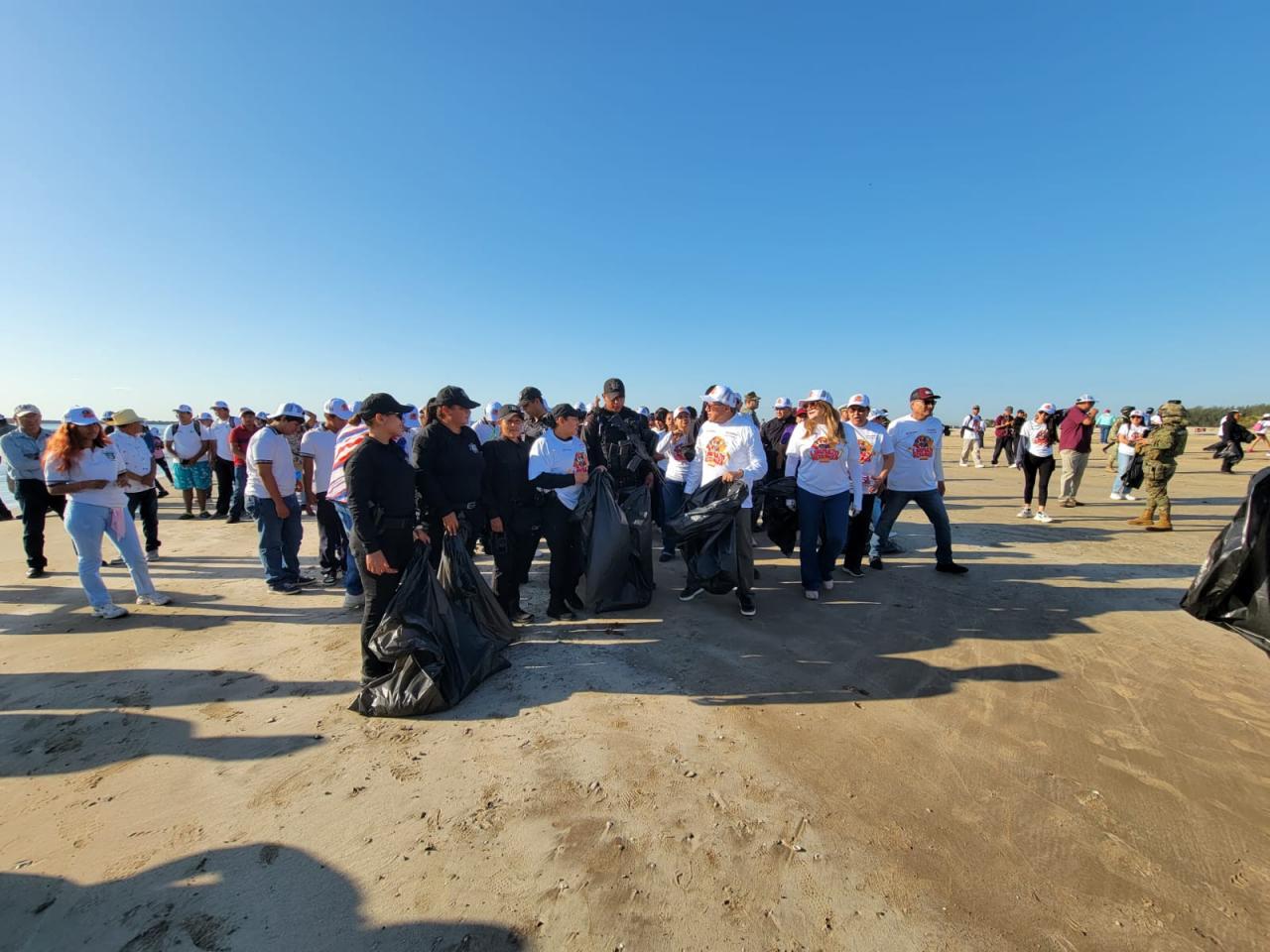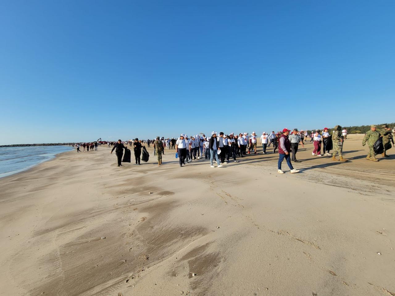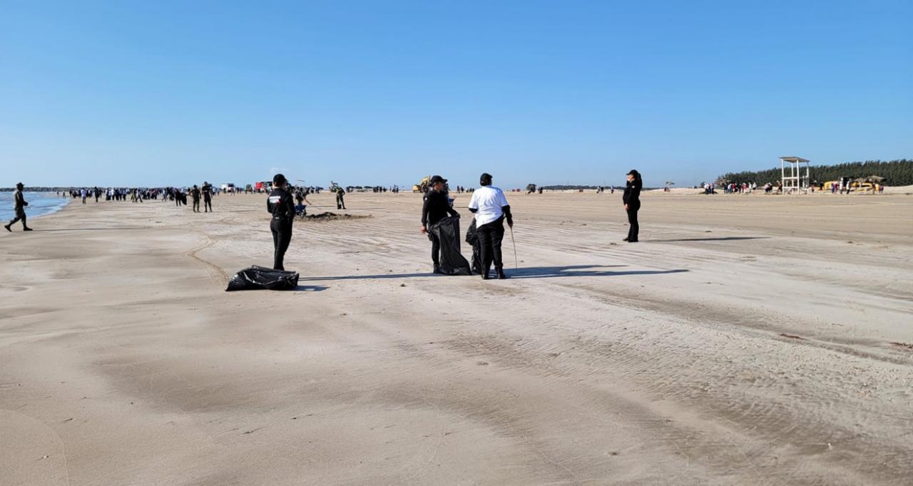 Altamira, Tamaulipas.- A unos días de celebrarse la Semana Santa, personal de la Guardia Estatal participó en ‘’Limpiazo Playa Tesoro’’, atendiendo la convocatoria del Gobierno Municipal de Altamira, en la cual, junto a autoridades del municipio, estado y federación, llevaron a cabo labores de limpieza y recolección de basura, residuos y sargazo.