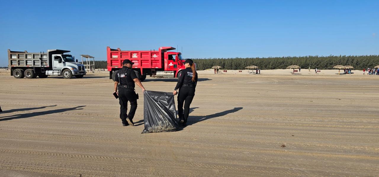 Esta playa es una de las más visitadas en este municipio durante esta temporada, por lo cual, elementos participantes reafirmaron su compromiso de servir a la ciudadanía al preparar este sitio para recibir la mayor cantidad de turistas.