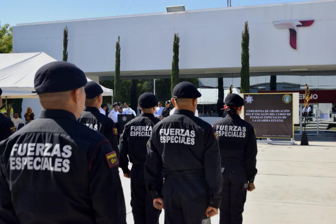 Ciudad Victoria, Tamaulipas. - Tras concluir su formación en el Curso de Fuerzas Especiales de la Guardia Estatal (FEGE), la Secretaría de Seguridad Pública de Tamaulipas (SSPT) recibió con una ceremonia de graduación a 15 nuevos integrantes egresados del octavo escalón, entre ellos, una mujer.